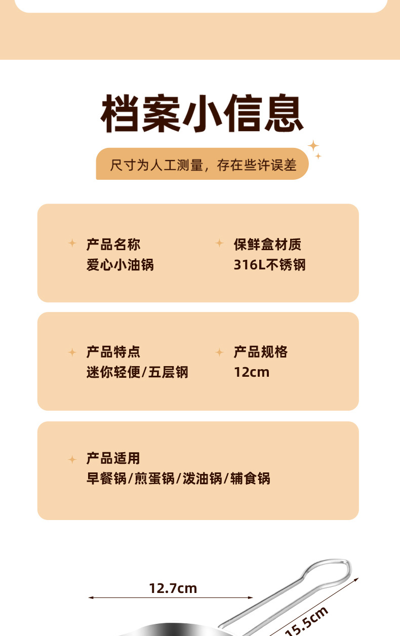 316 de acero inoxidable amor frito de huevos artefacto mini frigidora de paneles de alimentos suplementarios para bebés defectos gruesos
