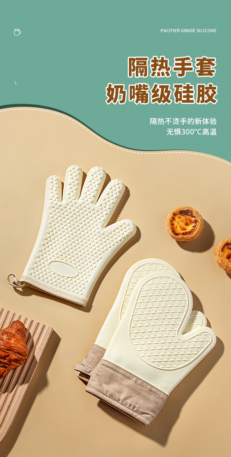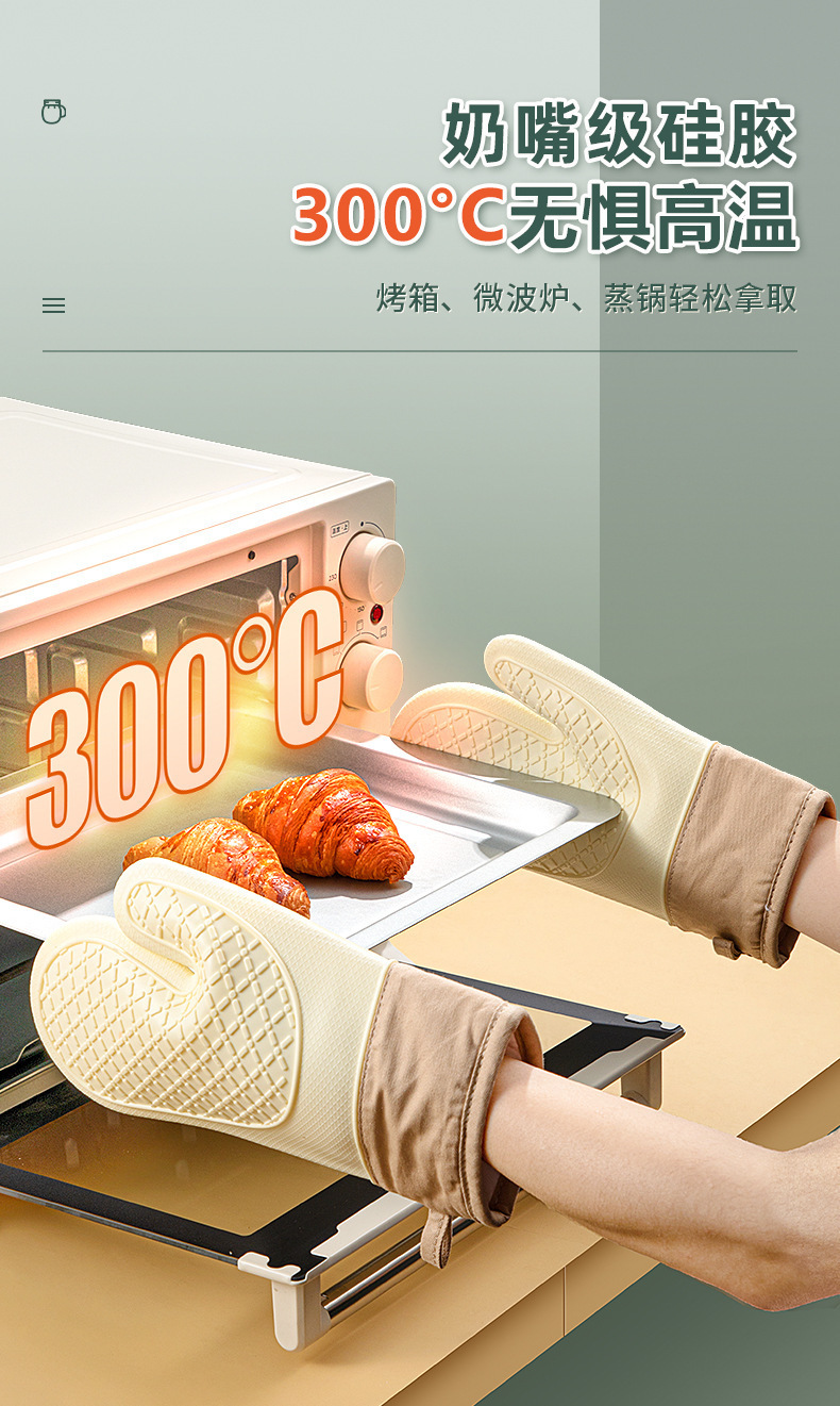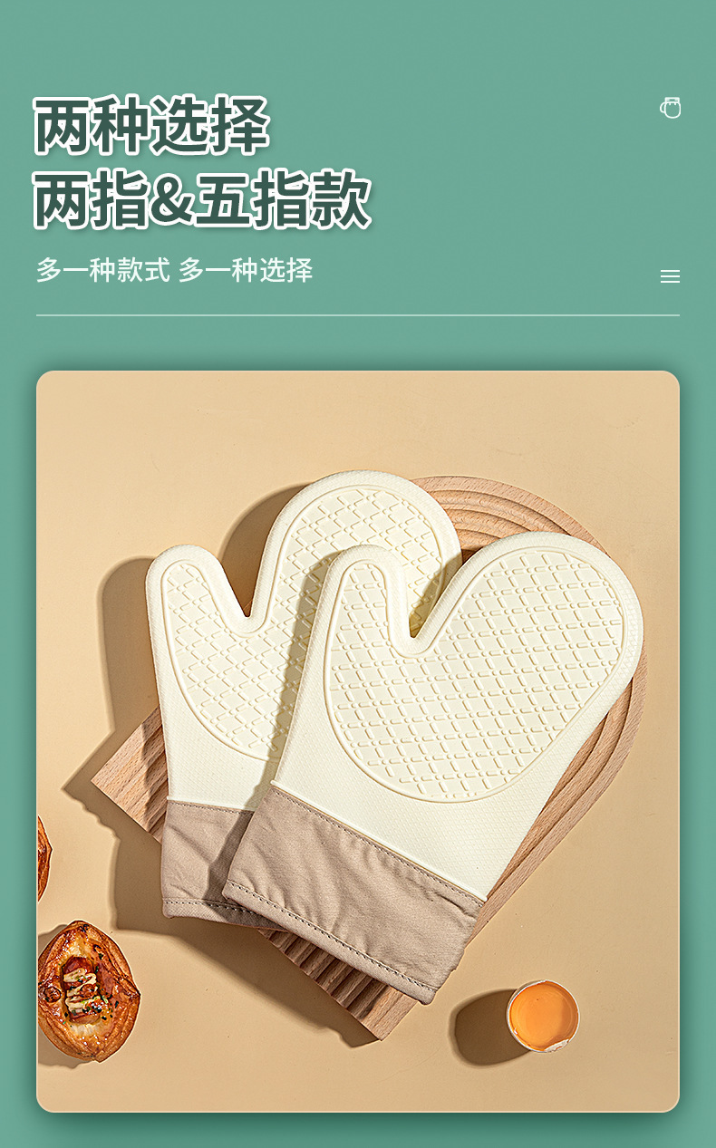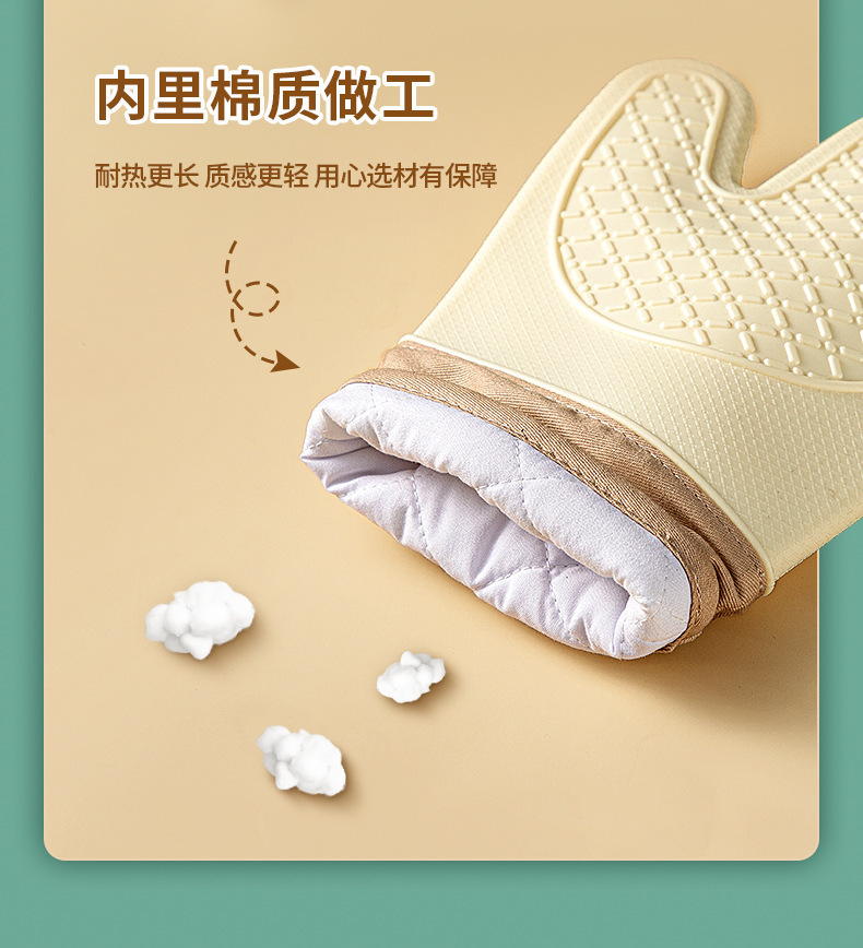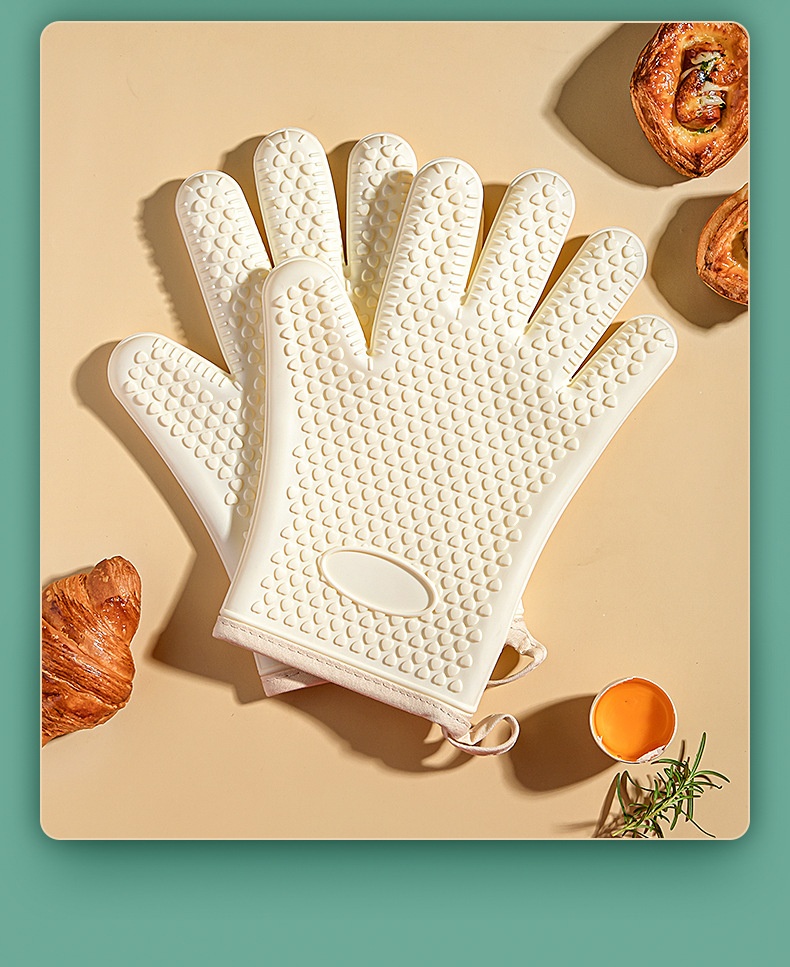 Guantes de silicona a prueba de quemaduras de cinco dedos para horno de microondas antideslizante grueso guante de aislamiento térmico de algodón resistente a altas temperaturas guante de aislamiento térmico de horneado