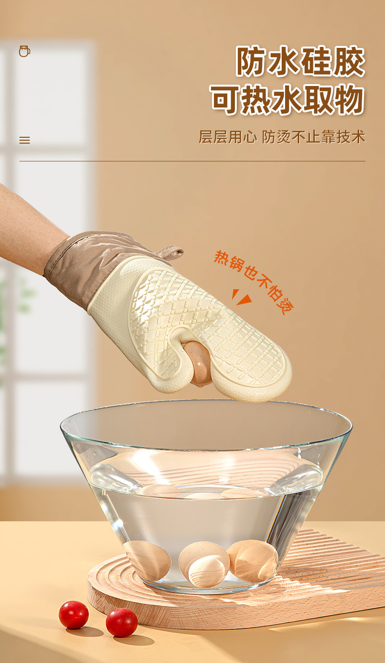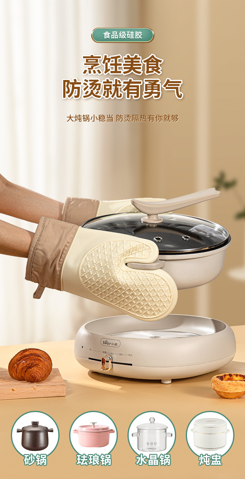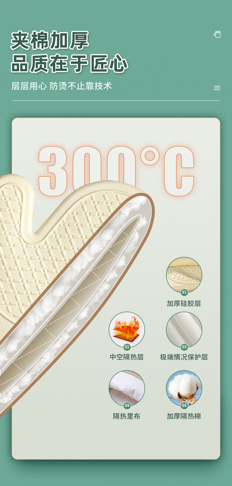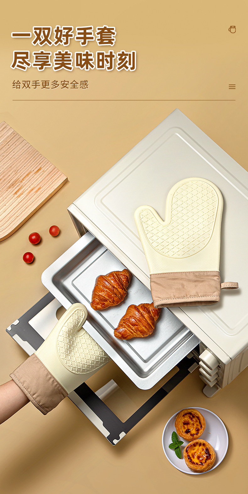 Guantes de silicona a prueba de quemaduras de cinco dedos para horno de microondas antideslizante grueso guante de aislamiento térmico de algodón resistente a altas temperaturas guante de aislamiento térmico de horneado
