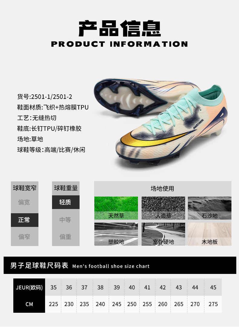 2025 nuevos zapatos de fútbol transfronterizos de clavos largos y bajos zapatos de entrenamiento deportivo juvenil para hombres y mujeres ventas directas de fábrica