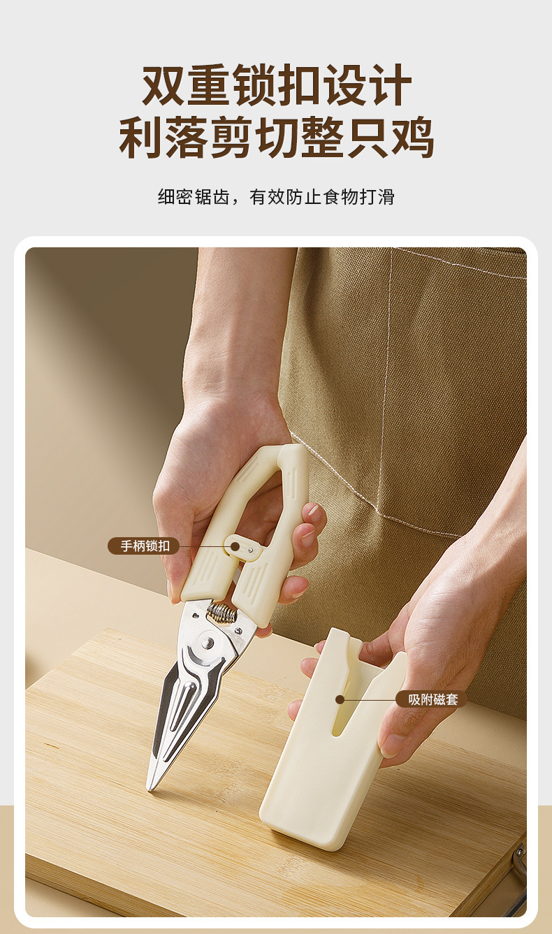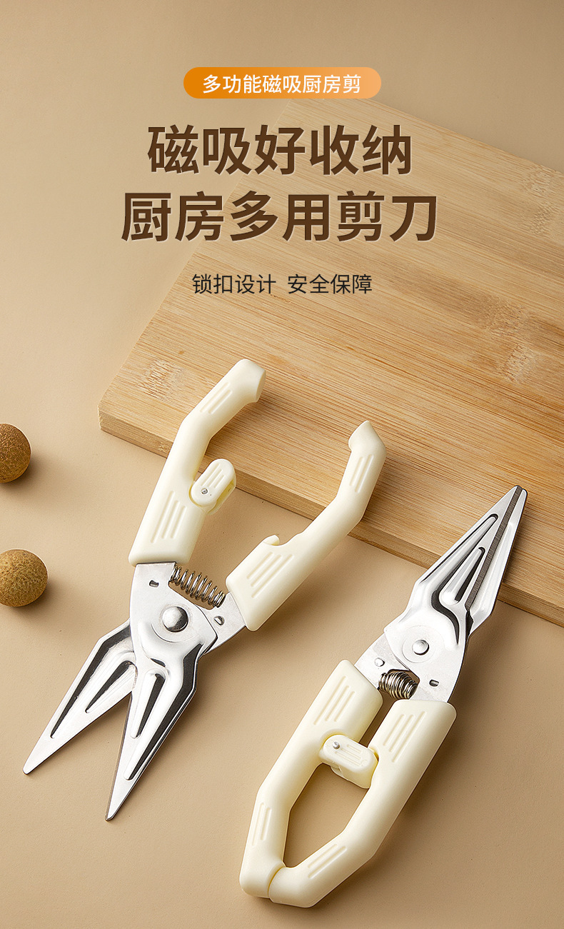 Potente tijeras de hueso de pollo tijeras de refrigerador tijeras de cocina multifuncional tijeras de acero inoxidable de absorción magnética especial de grado alimenticio tijeras de hueso de pez
