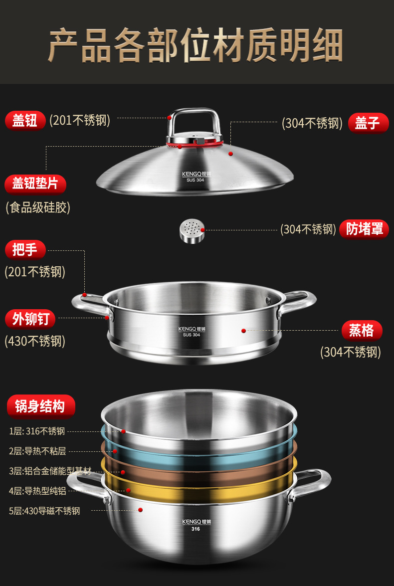 Alemania 316 vapor de acero inoxidable multicapa de grado alimenticio doméstico espesado integrado formado horno electromagnético cocinador de micropresión
