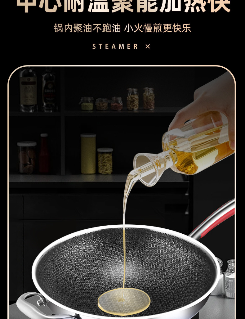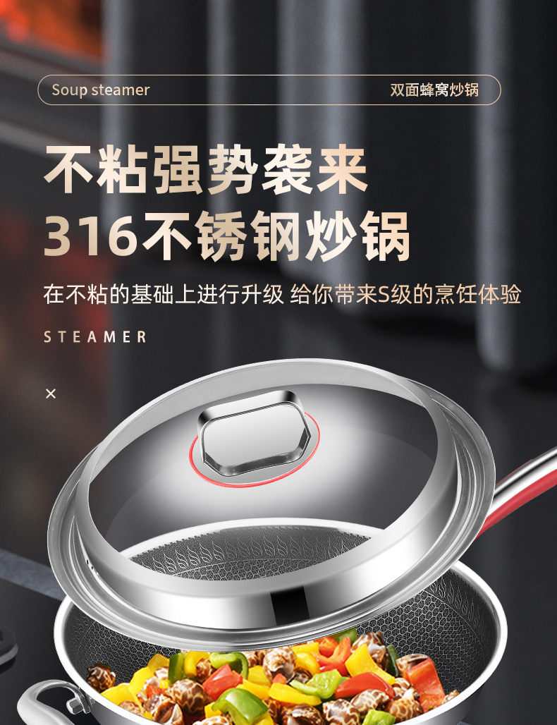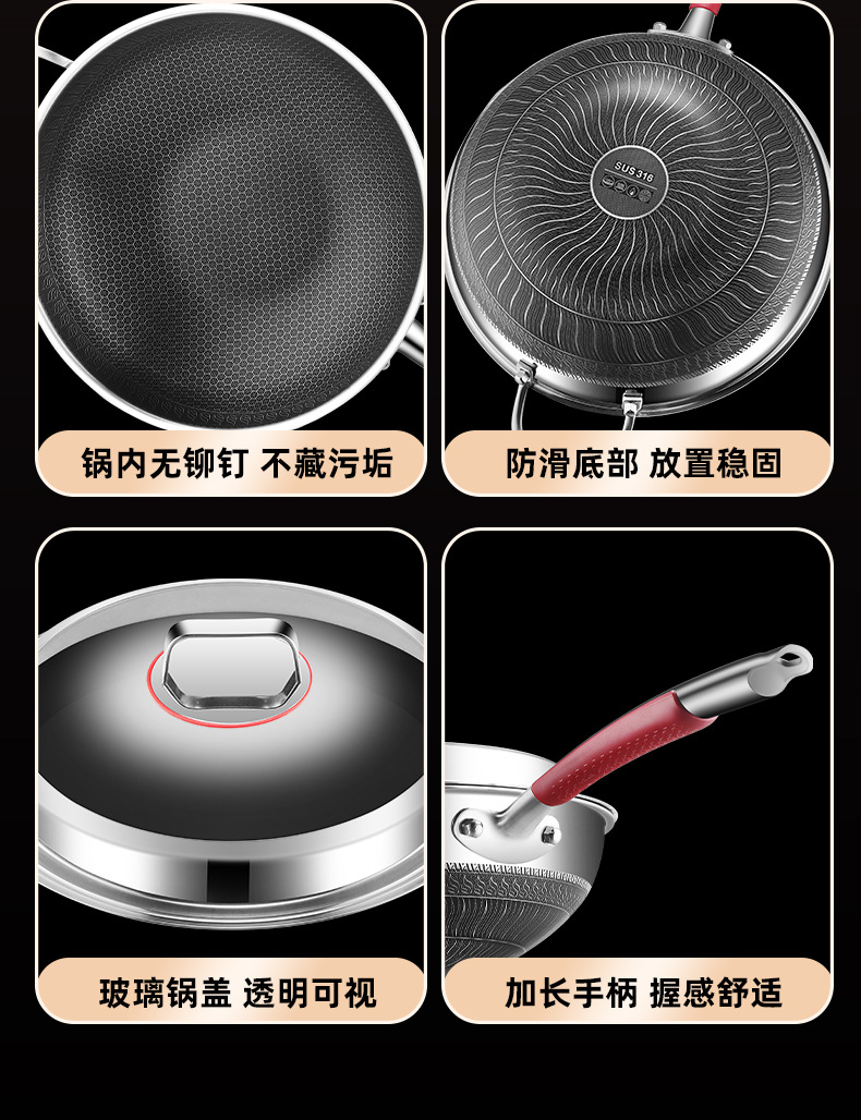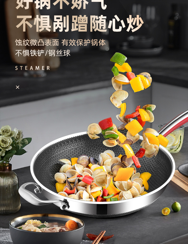 Pan de panal de acero inoxidable de tres capas de fondo plano antiadherente para horno electromagnético doméstico con patrón de panal