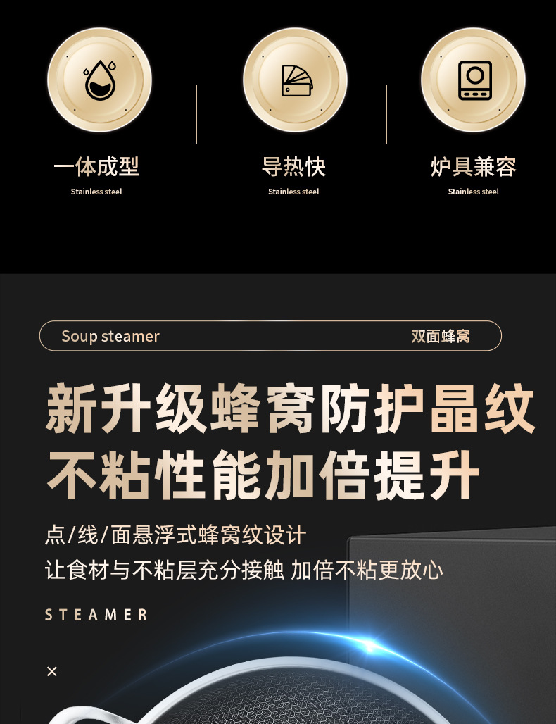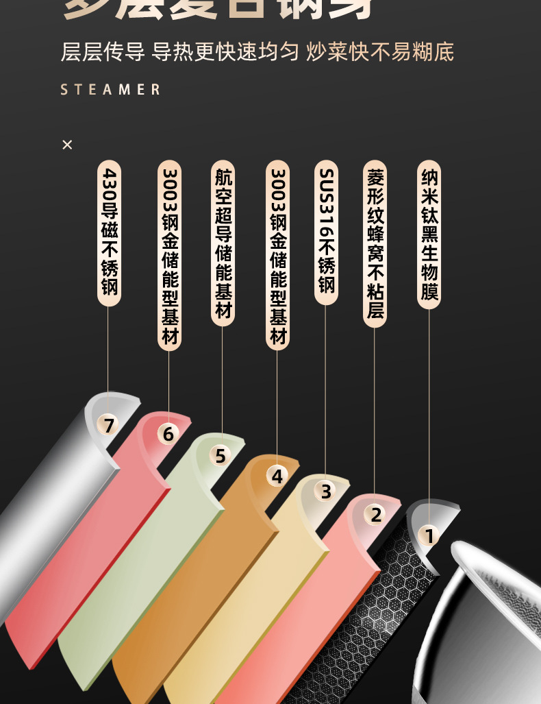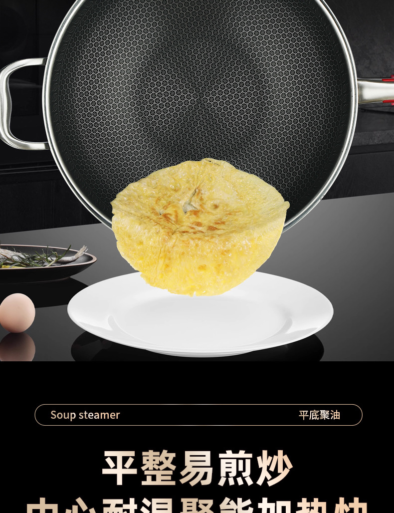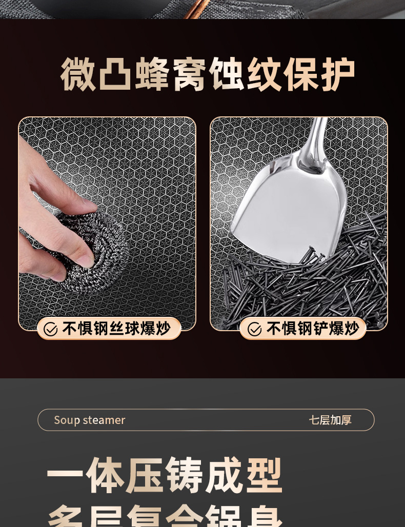 Pan de panal de acero inoxidable de tres capas de fondo plano antiadherente para horno electromagnético doméstico con patrón de panal