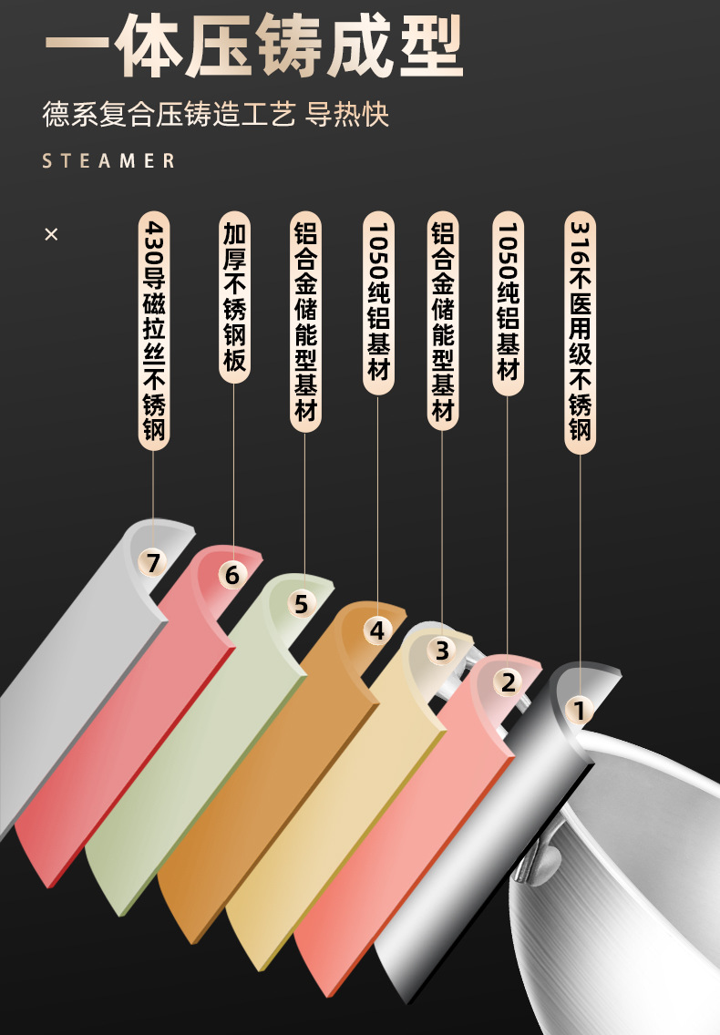 | Color | Pan simple, pan + cubierta transparente, pan + panel de vapor + cubierta transparente |