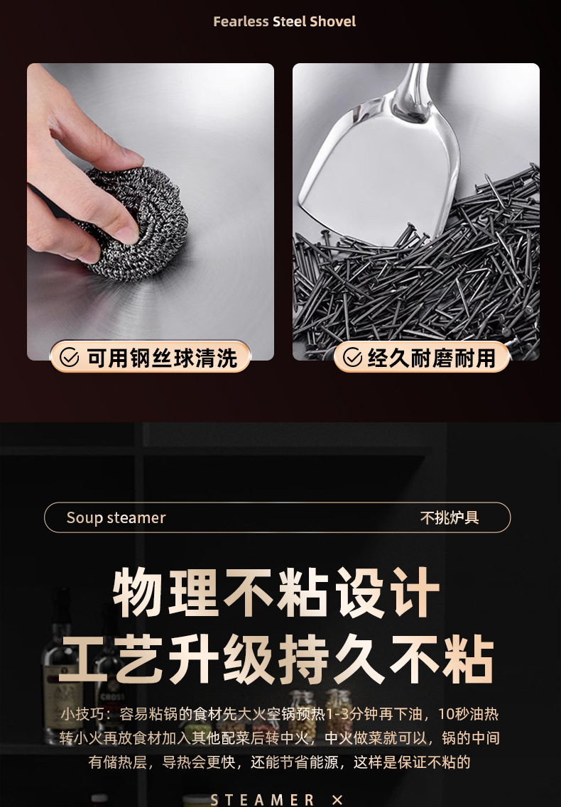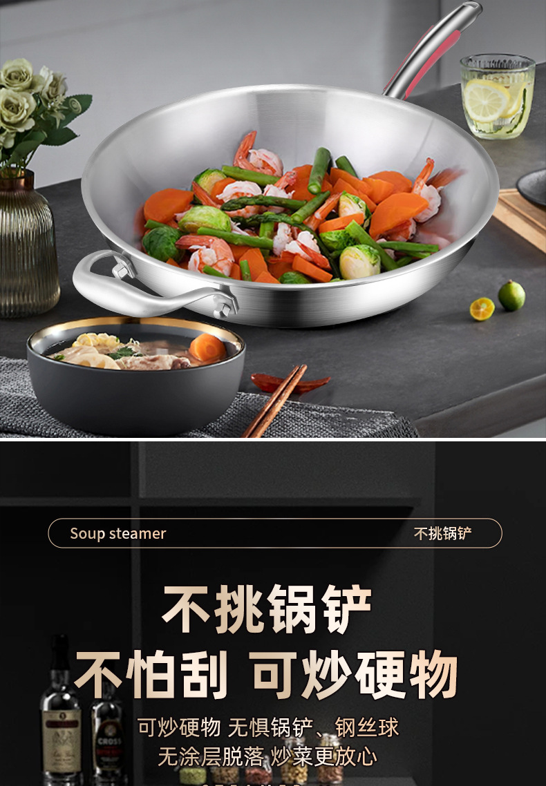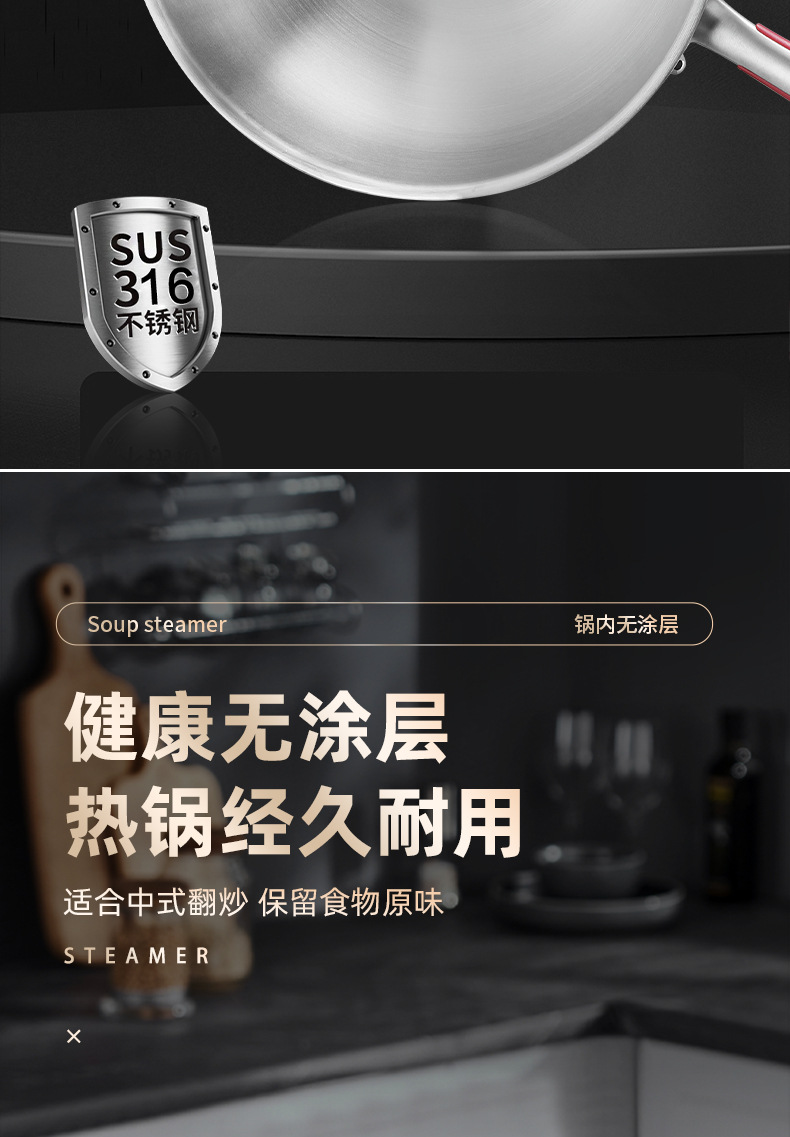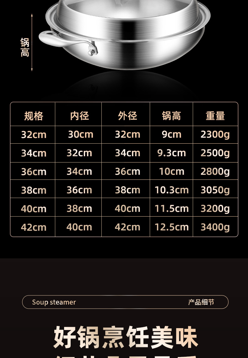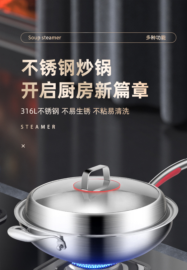 316 acero inoxidable engrosado inadherente freidora cajón de vapor 42CM fábrica de freidora hotel de olla profunda