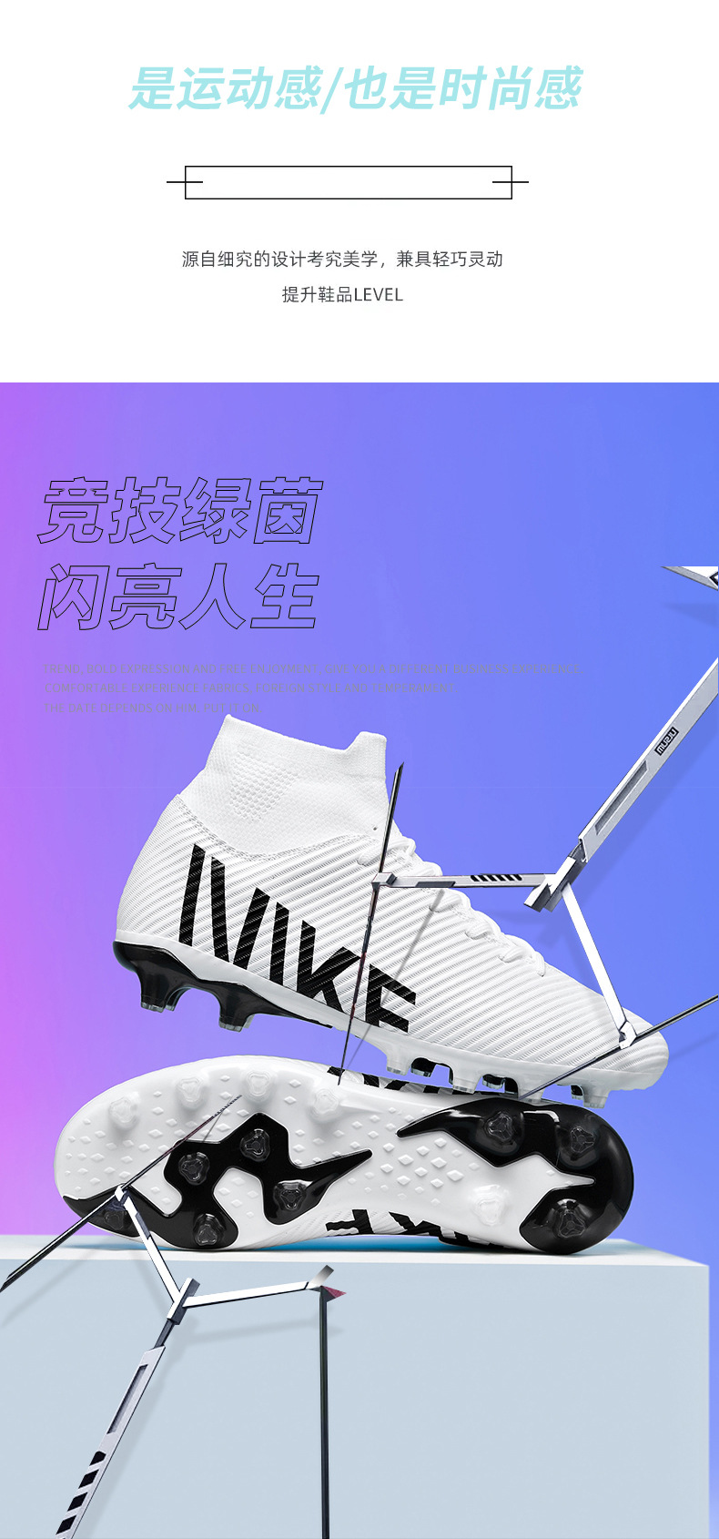 2025 nuevas zapatillas de fútbol transfronterizas para jóvenes al aire libre de tachuelas largas competencia de caña alta venta al por mayor cómoda venta directa de fábrica de césped