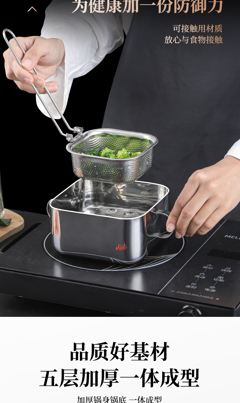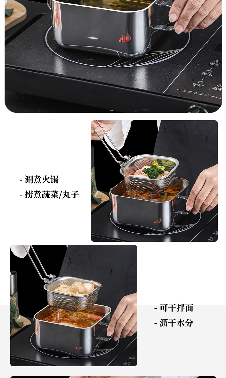 Freidora de acero inoxidable 304, filtro doméstico, olla de fideos instantáneos, olla de suplemento alimenticio para bebés, mini pequeña y multifuncional