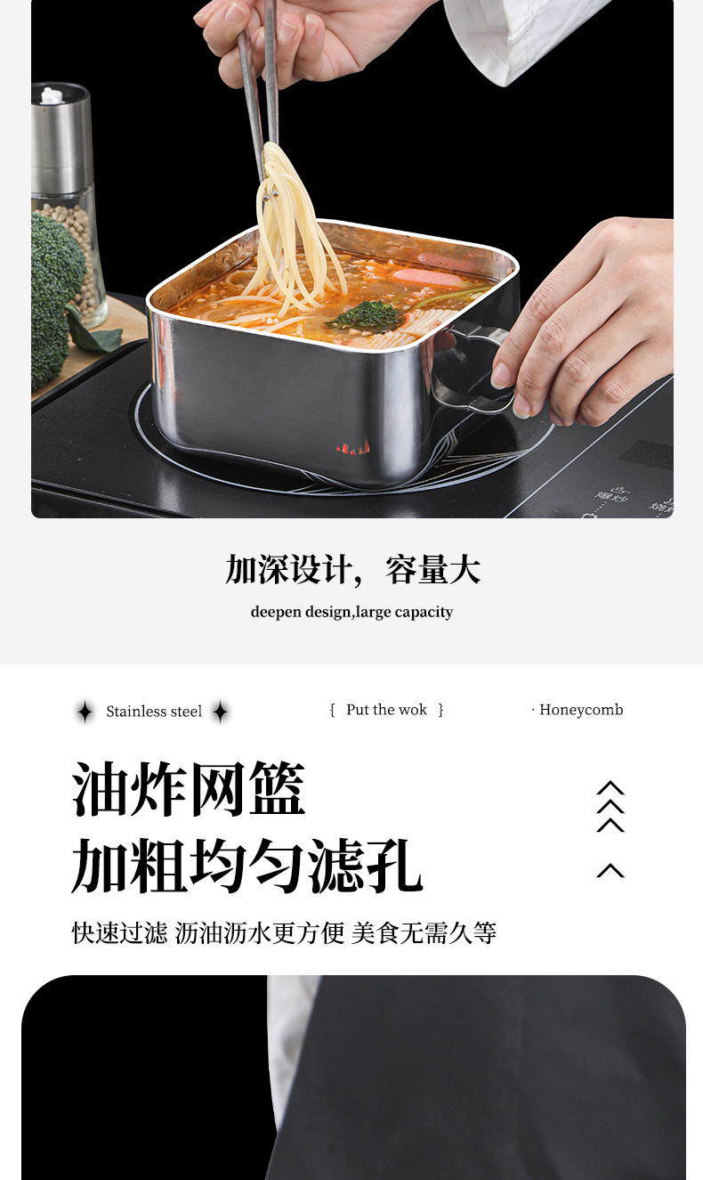 | Especificaciones | Tazón de doble oreja cuadrada de 14cm (con tapa),Cesta de freír cuadrada (individual),Tazón de doble oreja cuadrada de 14cm (cesta de freír cuadrada con tapa de acero) |