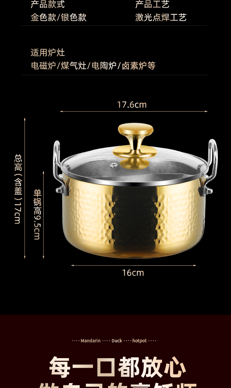 Fabricantes de comercio exterior 304 martillo de acero inoxidable olla de leche de cocina de tres capas de acero Duck Duck olla caliente 18CM olla sin humo