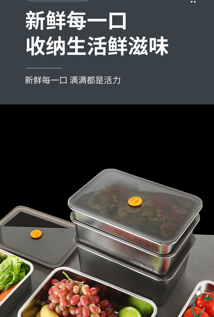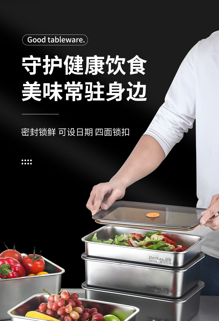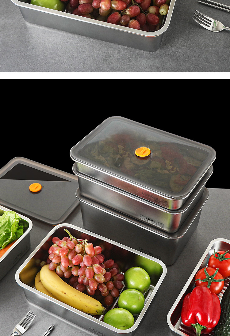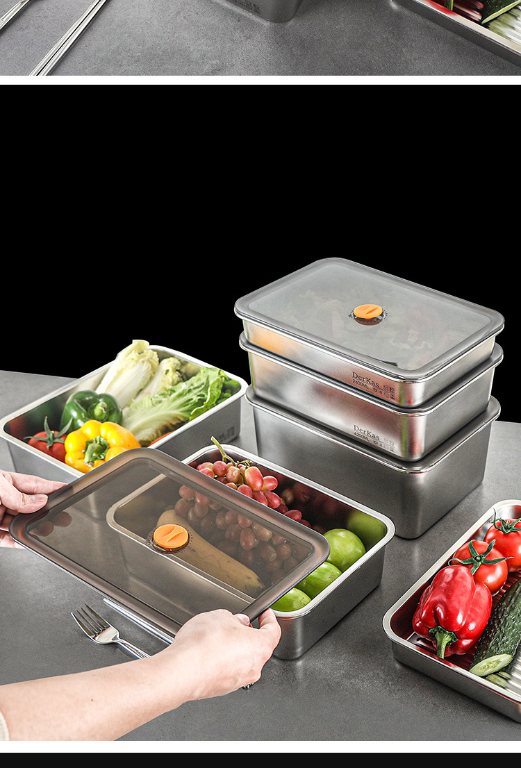 Caja de conservación fresca de acero inoxidable 316 Caja de almacenamiento sellada al vacío de conservación fresca refrigerada y congelada Almacenamiento en refrigerador de gran capacidad con tapa