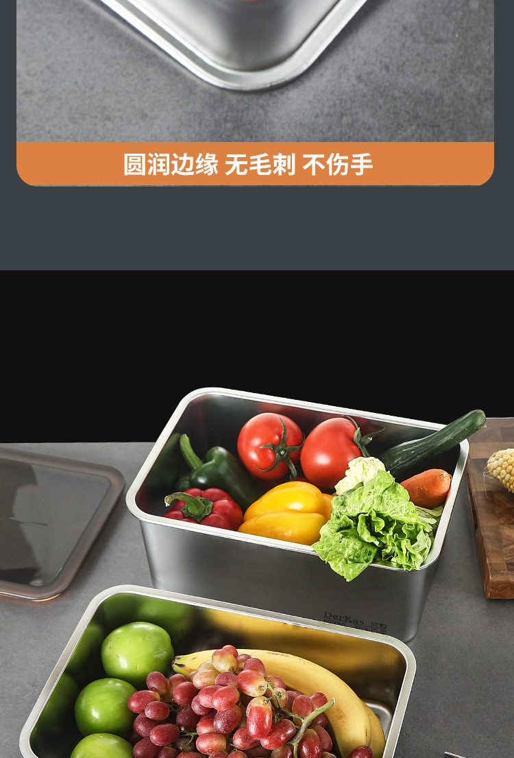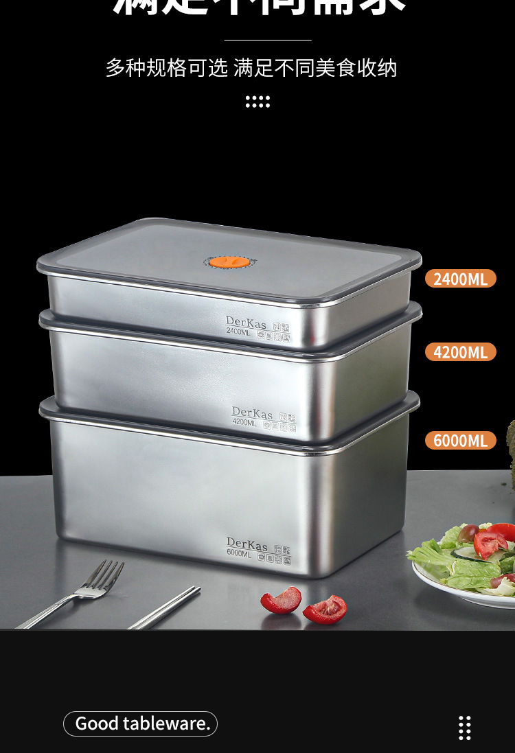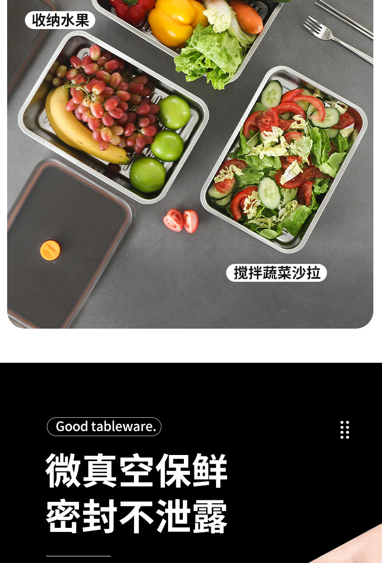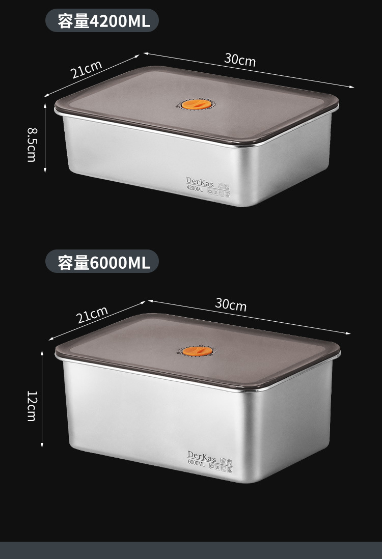 Caja de conservación fresca de acero inoxidable 316 Caja de almacenamiento sellada al vacío de conservación fresca refrigerada y congelada Almacenamiento en refrigerador de gran capacidad con tapa