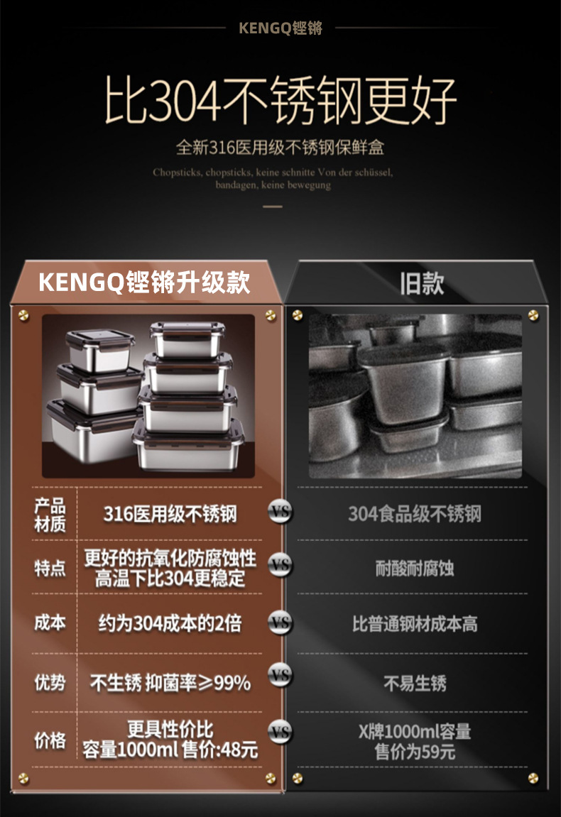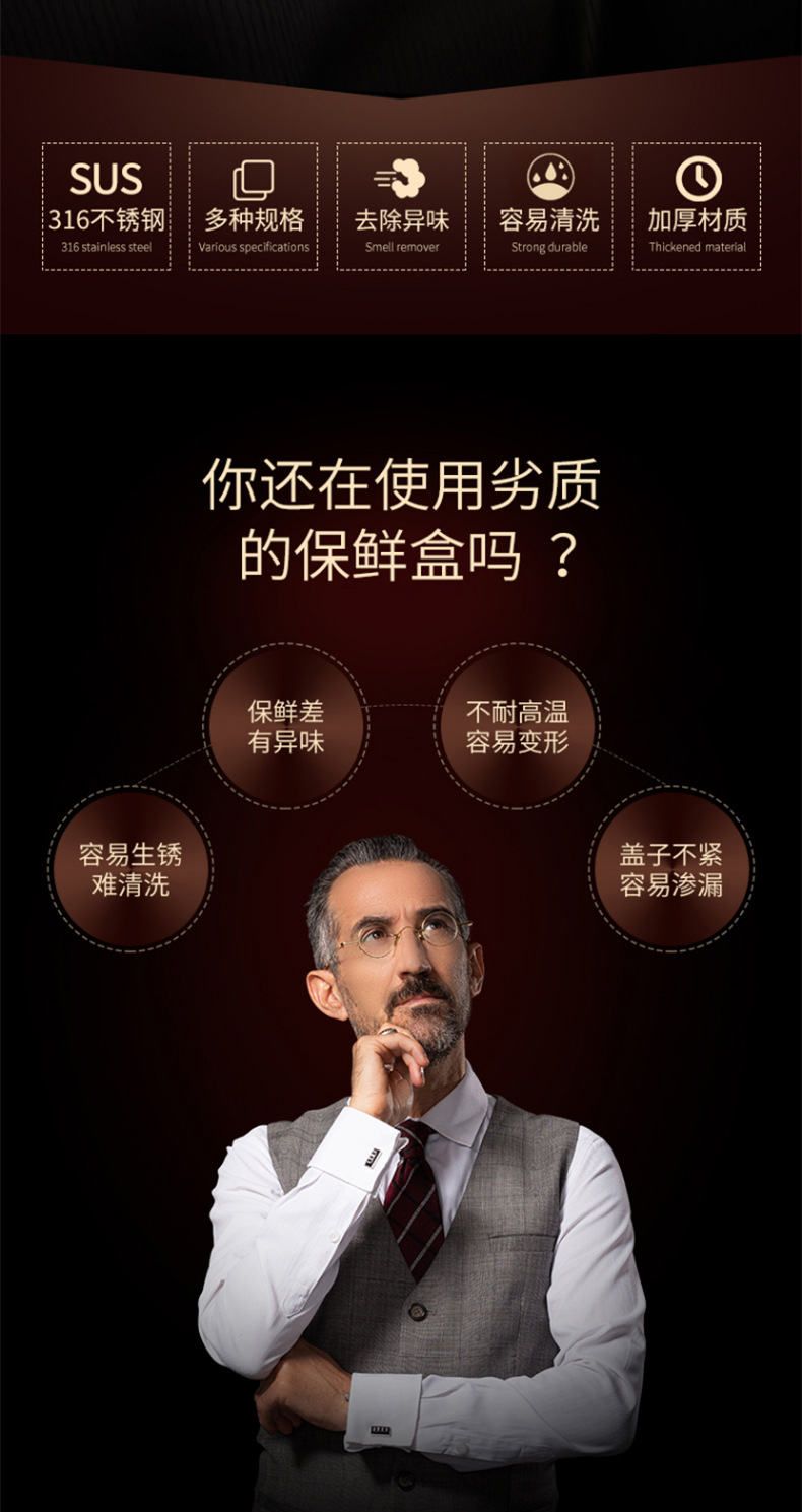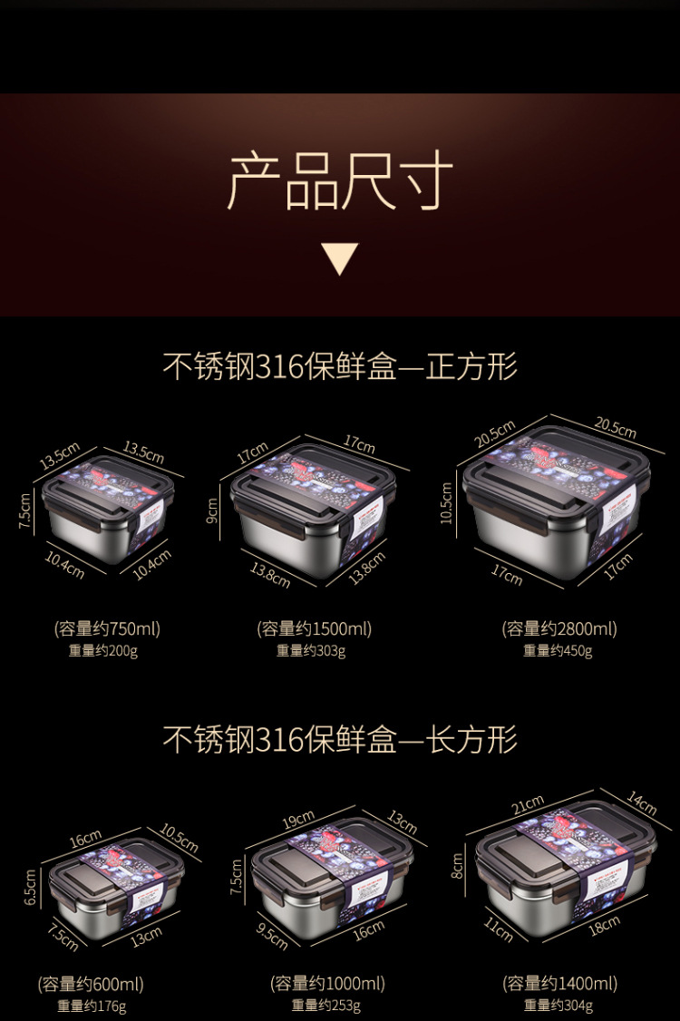 316 caja de almacenamiento de acero inoxidable puede calentar la caja de almuerzo de microondas caja de frutas caja de almuerzo congelada caja de almacenamiento