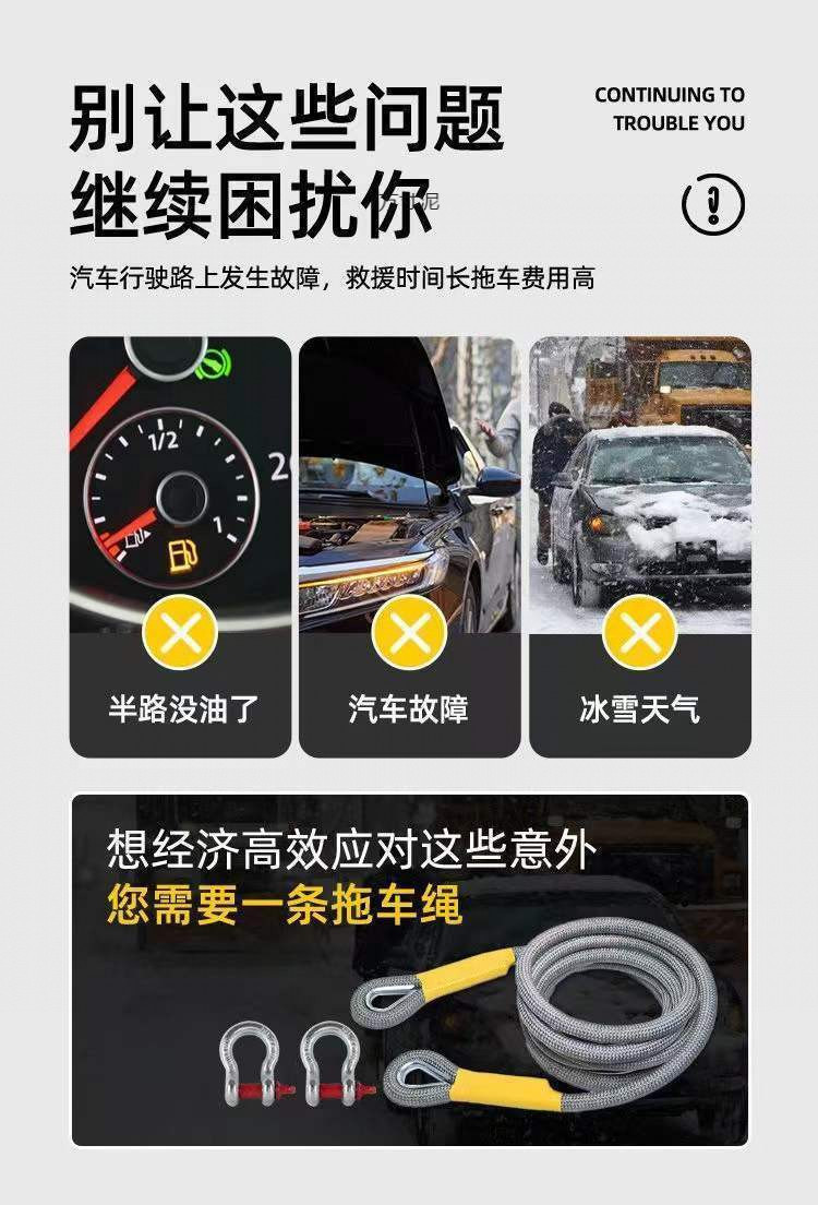 Cuerdas de remolque de automóviles cuerdas de remolque de carretera cuerdas de remolque de rescate anti-impacto cuerdas de tracción gruesas cuerdas de remolque durables