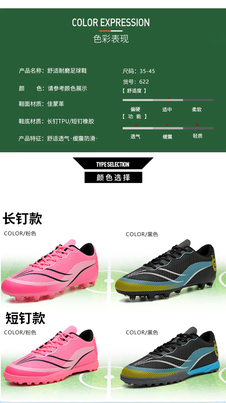 2024 nuevos zapatos de fútbol transfronterizos para hombres y mujeres, zapatos de entrenamiento de entrenamiento de clavos juveniles, fábrica directa