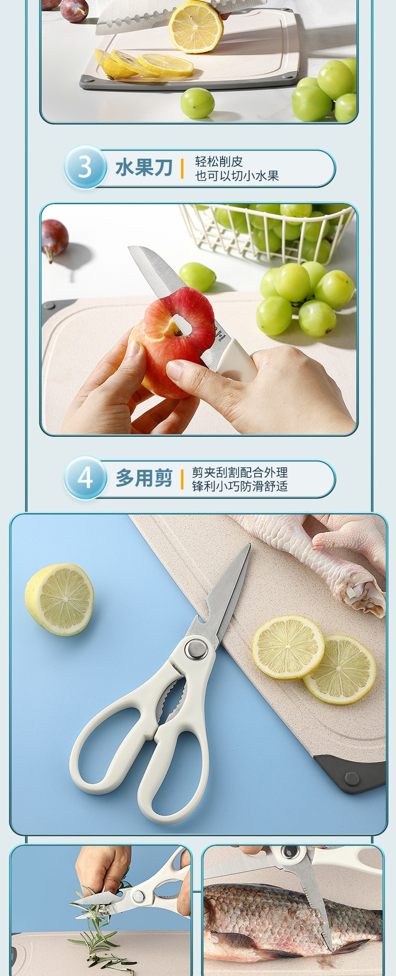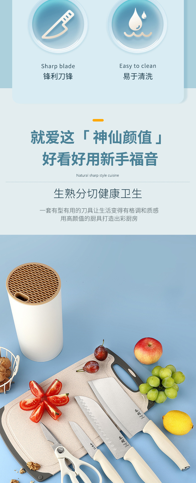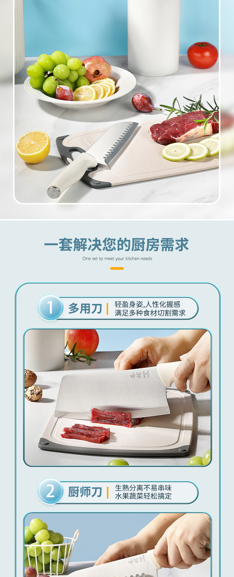 Cuchillo de cocina de acero inoxidable transfronterizo conjunto conjunto de herramientas de cocina cuchillo de cocina casero tablero de corte set completo de siete piezas