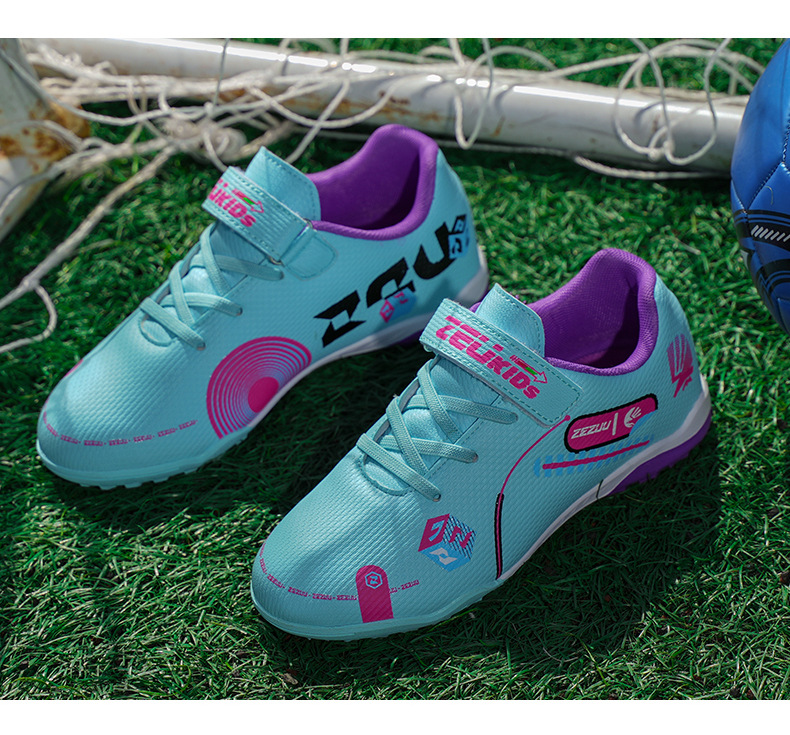 Nuevos zapatos de fútbol velcro, niños y niñas, niños y niñas, zapatos de fútbol de césped artificial, zapatos de entrenamiento de competición