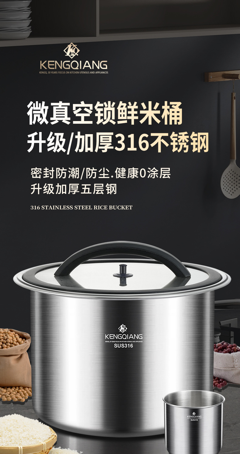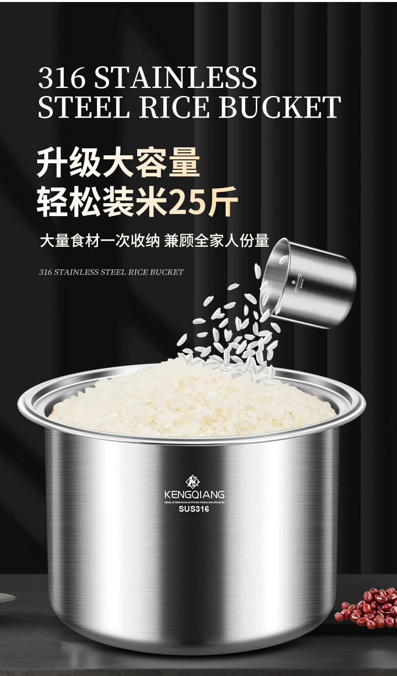 2025 nuevo barril de arroz doméstico 316 granos de acero inoxidable a prueba de insectos a prueba de humedad tanque de almacenamiento tanque de harina sellado caja de arroz