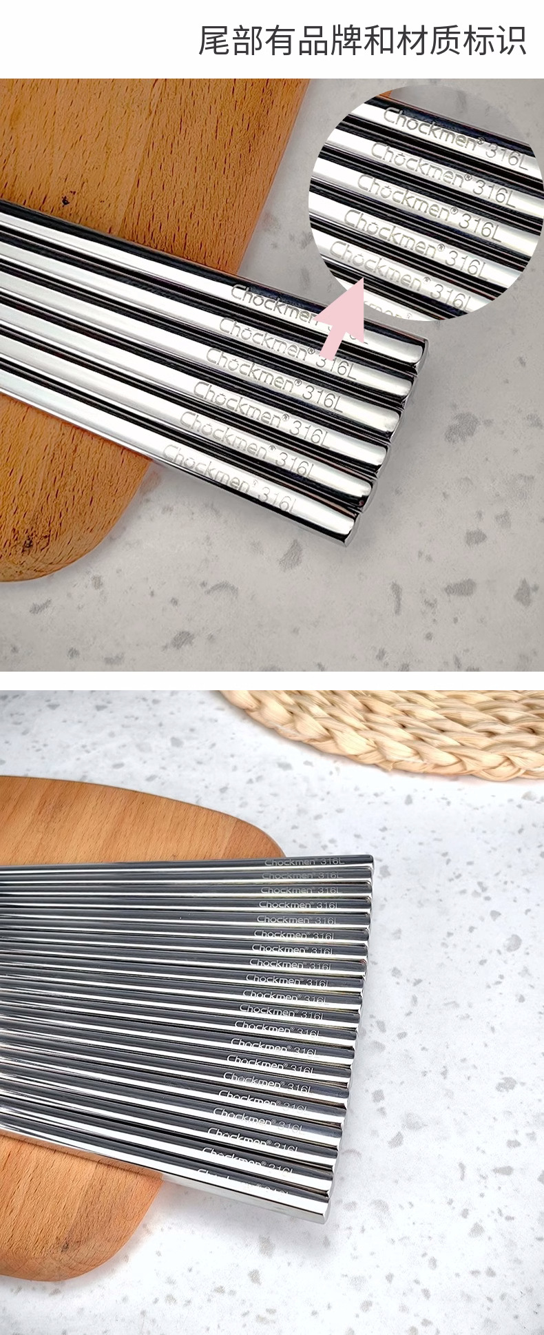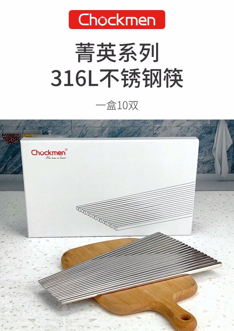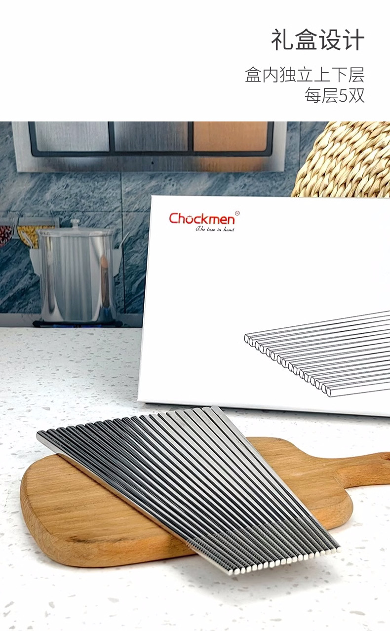 Chockmen Zhuo Deming Jingying serie 316L de acero inoxidable antideslizante palillos del hogar caja de regalo 10 pares