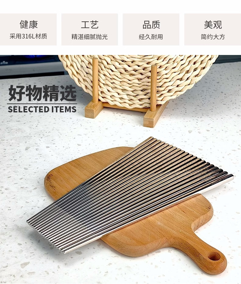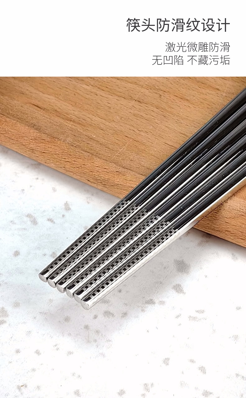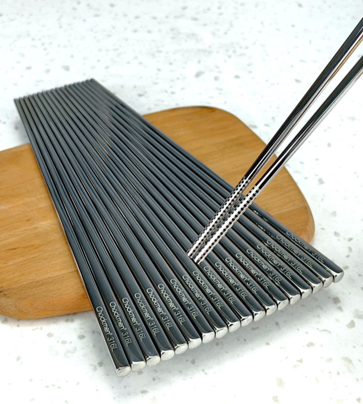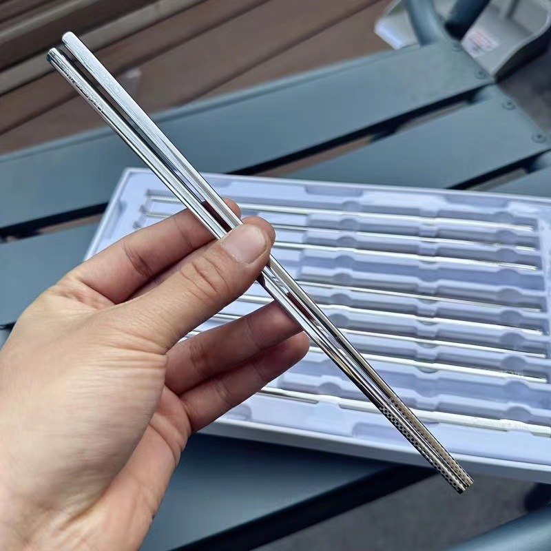Chockmen Zhuo Deming Jingying serie 316L de acero inoxidable antideslizante palillos del hogar caja de regalo 10 pares