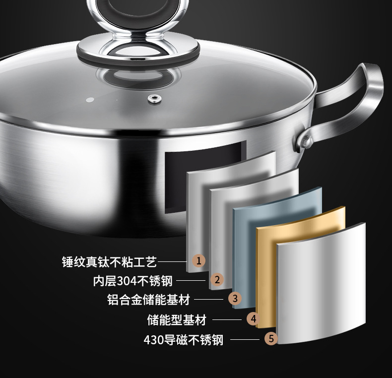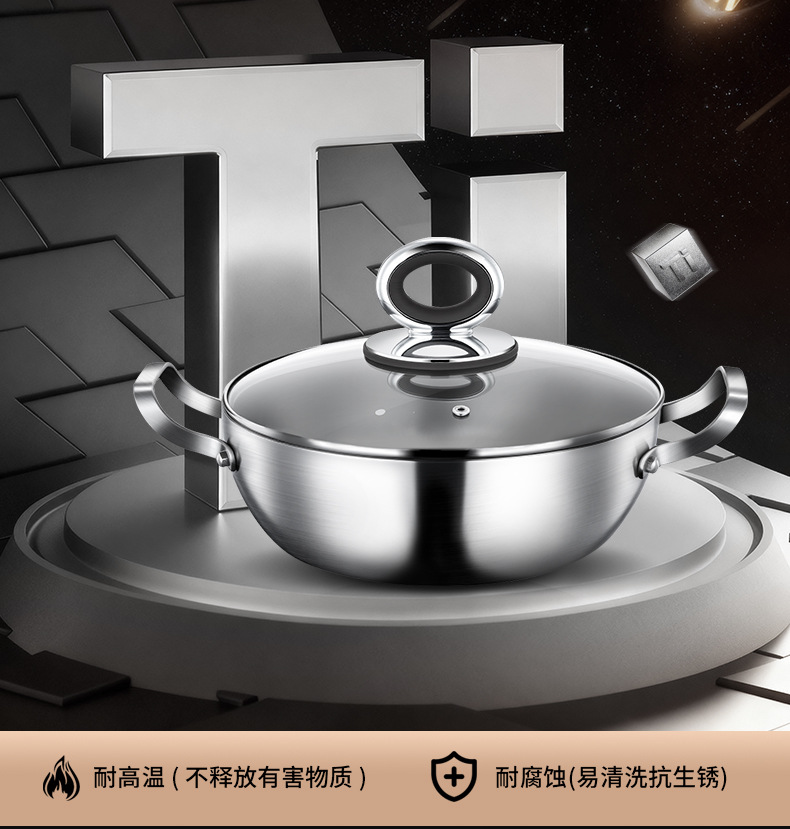 Caja de cocción de titanio real sin recubrimiento de gran capacidad no pegajosa para el hogar, horno electromagnético especial para la olla de cocción de titanio