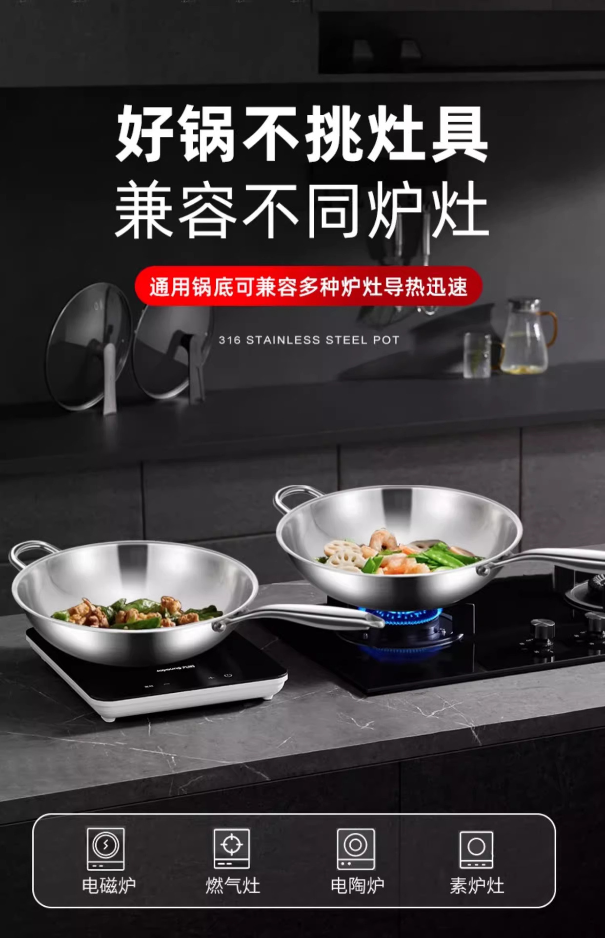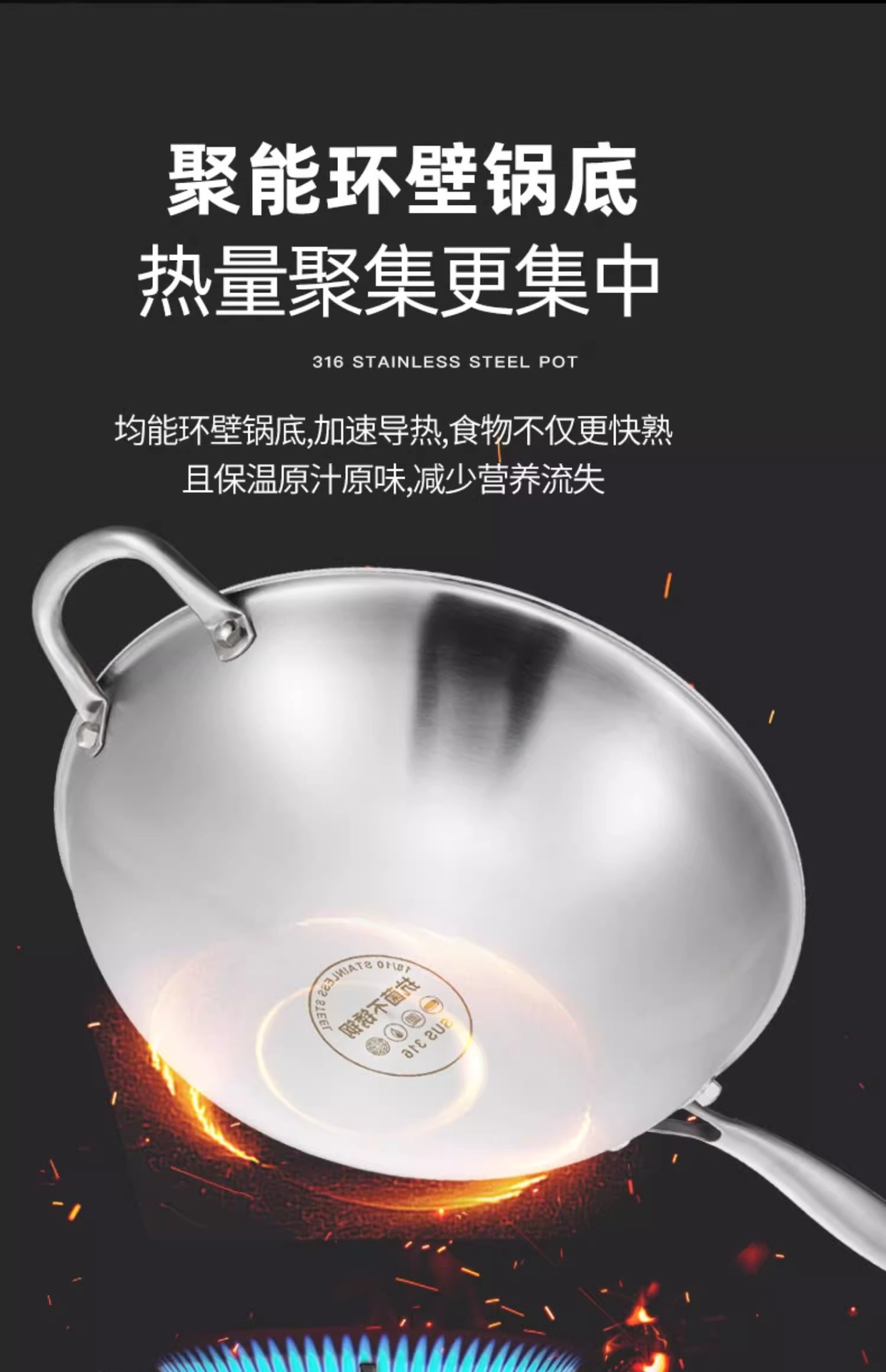 Tangbang 316 salsa de acero inoxidable sin recubrimiento antiadherente de grado alimenticio para horno electromagnético de gas