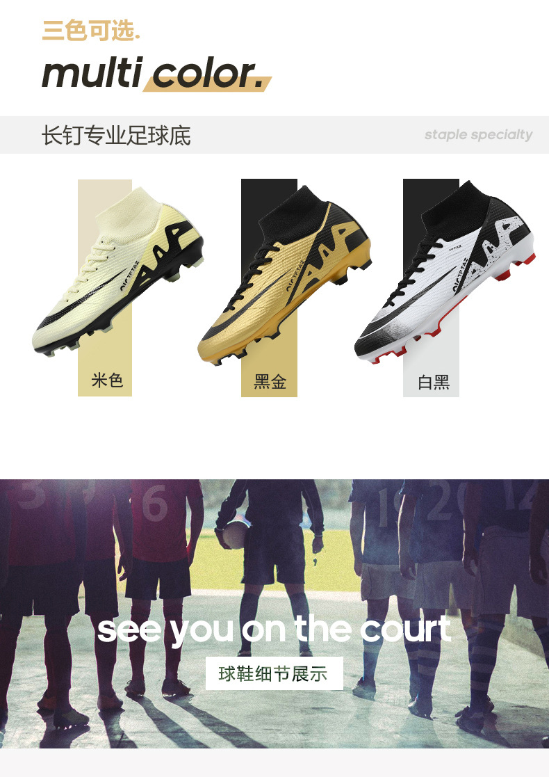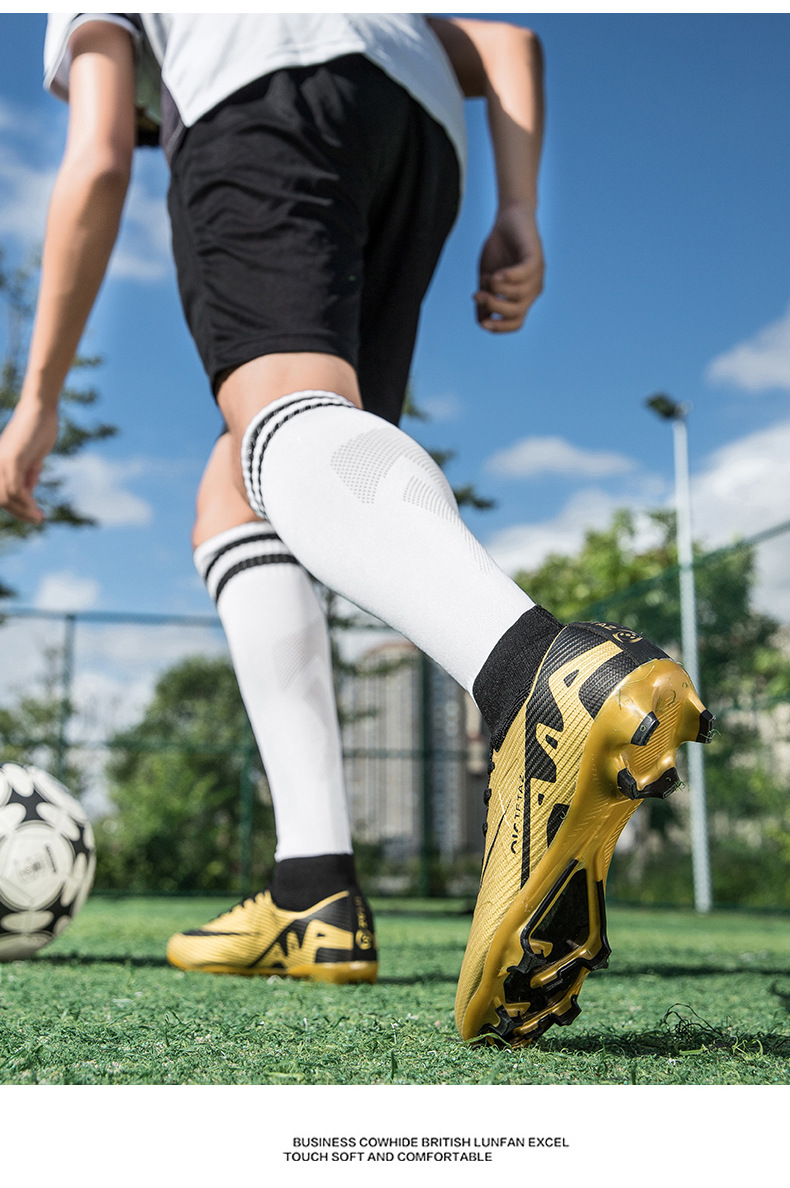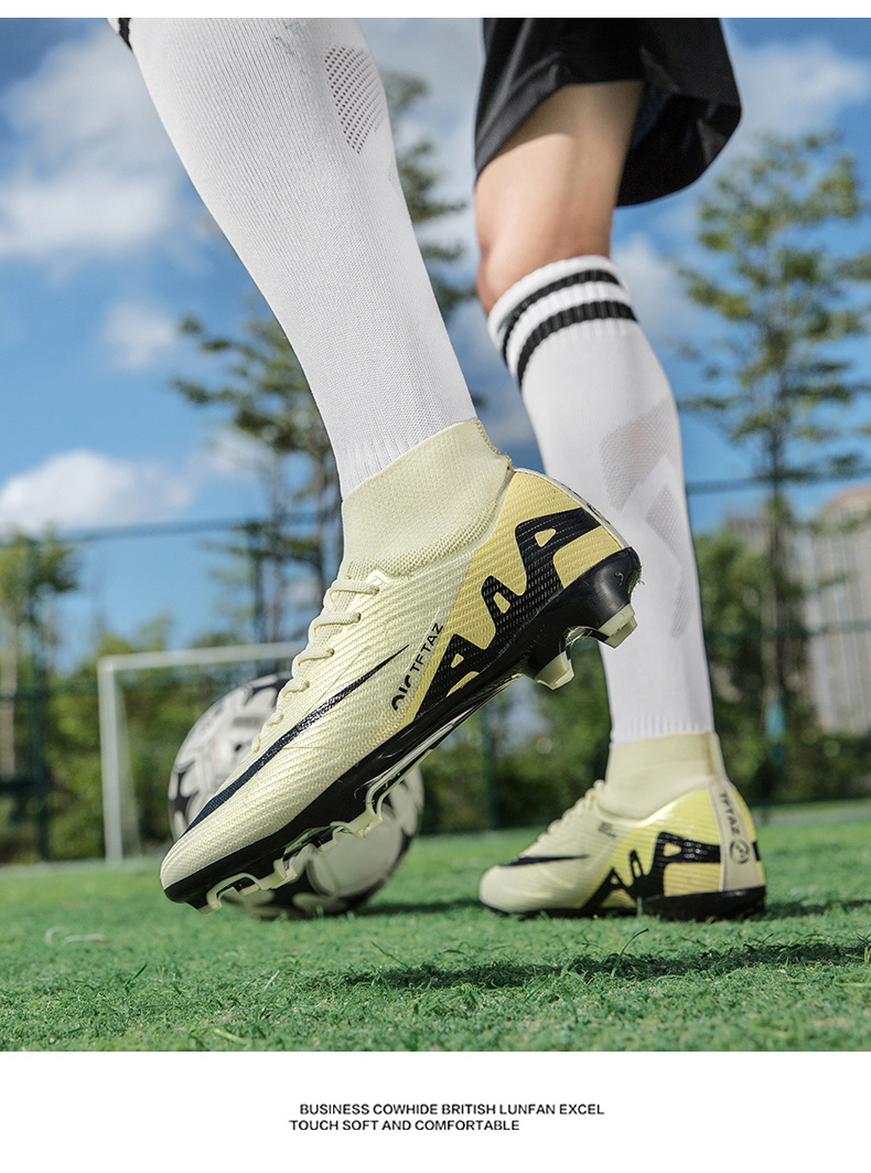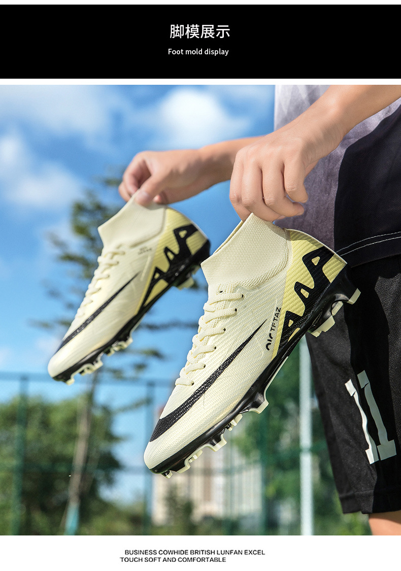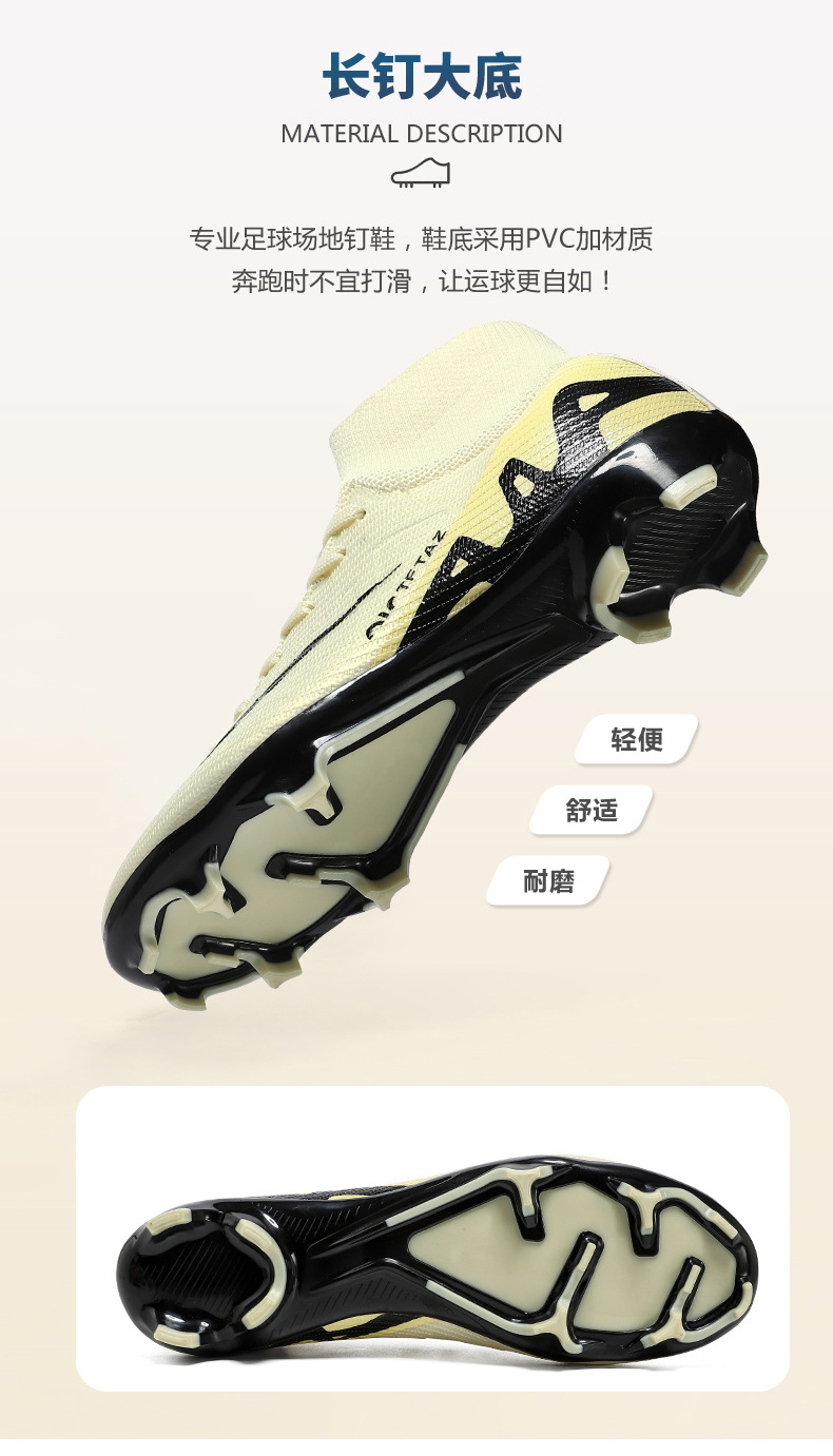 Nuevos zapatos de fútbol de alto nivel transfronterizos hombres y mujeres jóvenes clavos largos zapatos de entrenamiento de clavos rotos fábrica directa generación