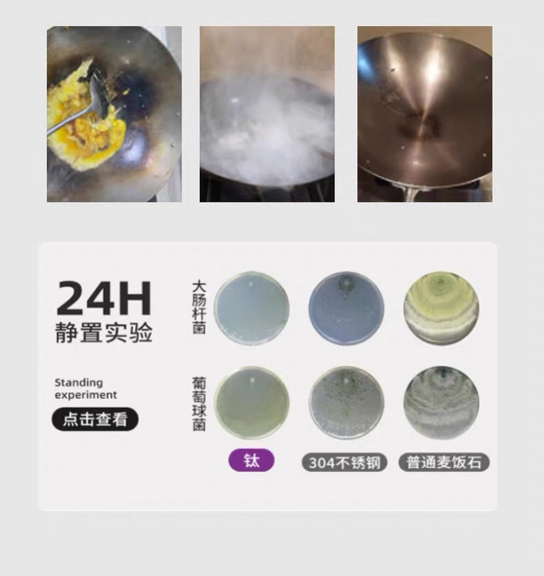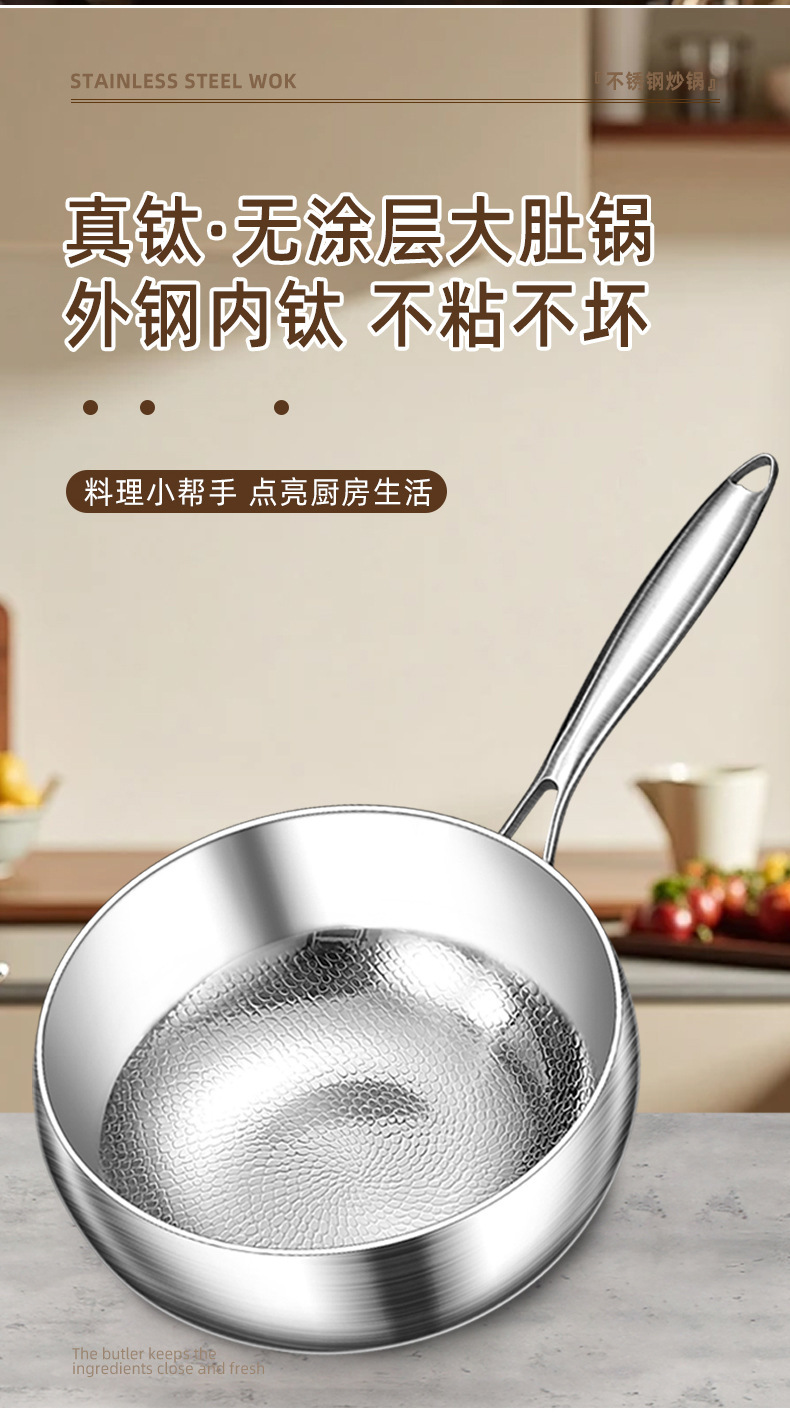 Pot de colza de titanio puro sin recubrimiento no pegajoso horno electromagnético martillo de titanio pequeño wok
