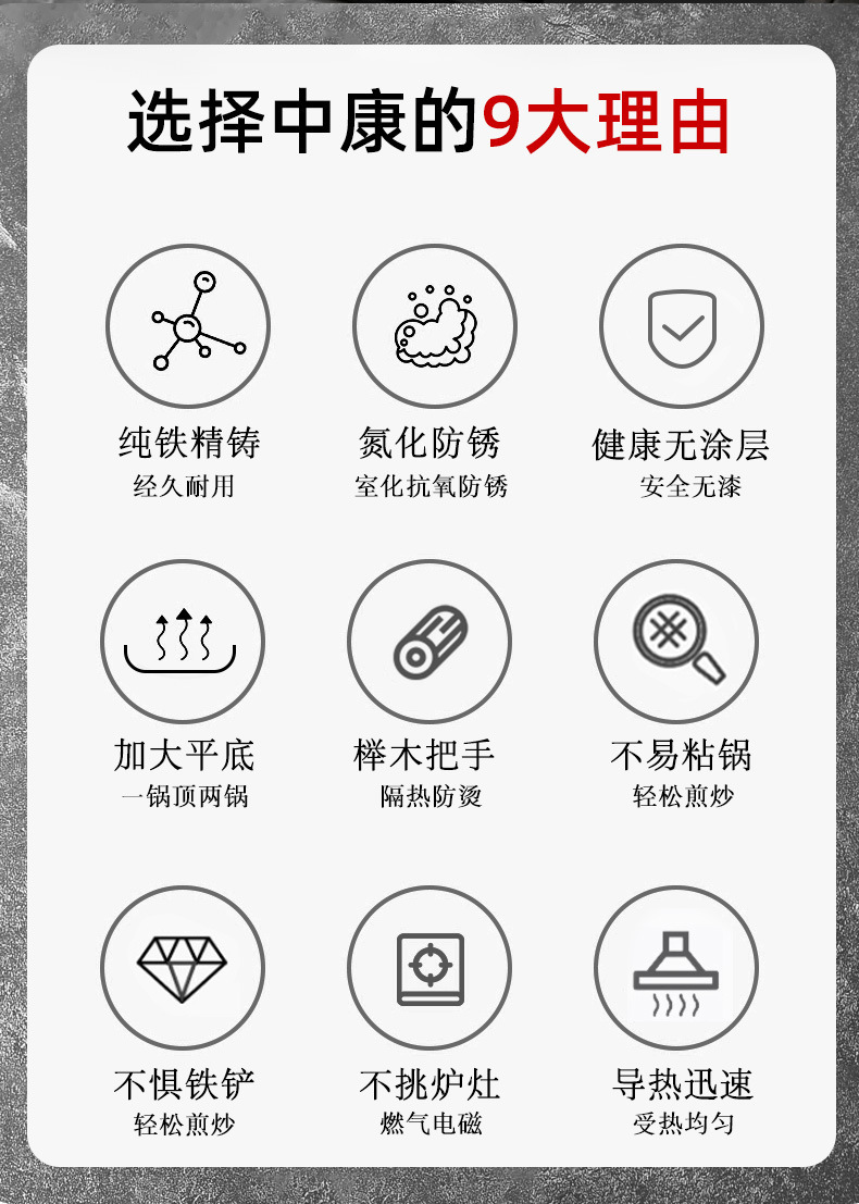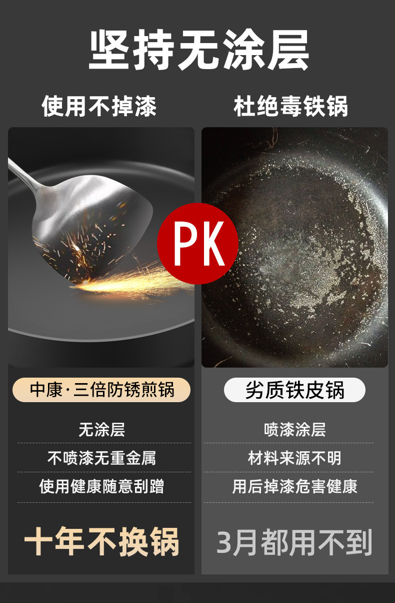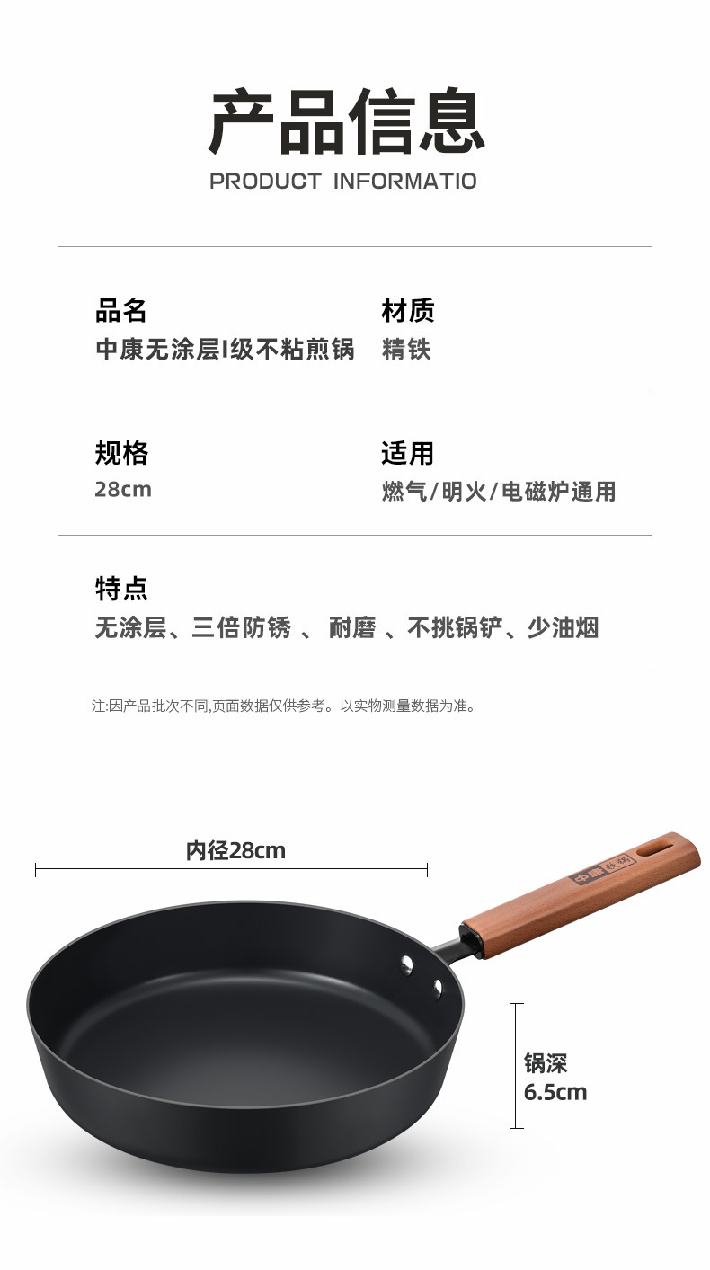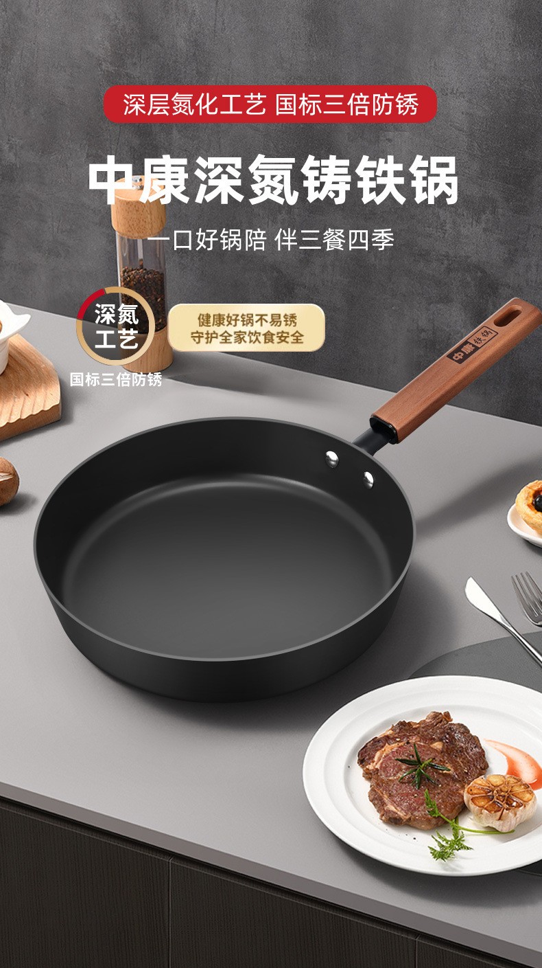 Pan de hierro Zhongkang sin recubrimiento pan antiadherente casero horno de gas horno electromagnético galleta frita huevo filete freidora