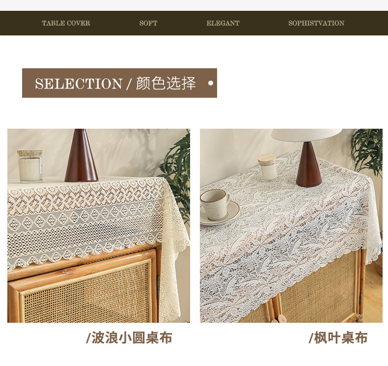 | Color | Toal de mesa de hoja beige, toal de mesa de hoja blanca, toal de mesa de hilo, toal de mesa de sol, toal de mesa de hoja de arce, toal de mesa de onda retro, toal de mesa de onda pequeña |