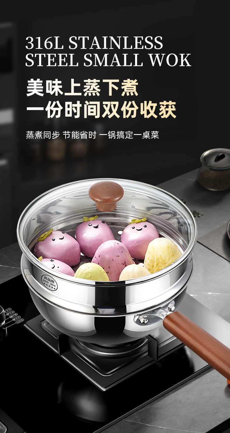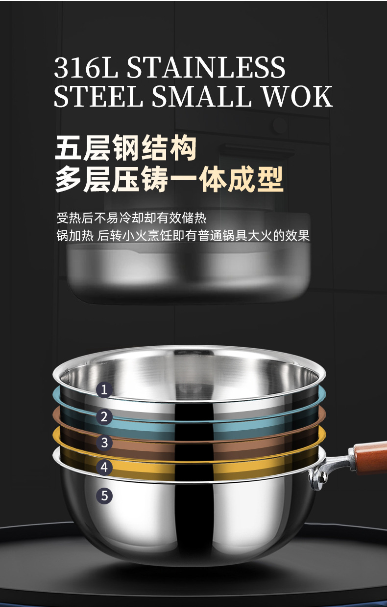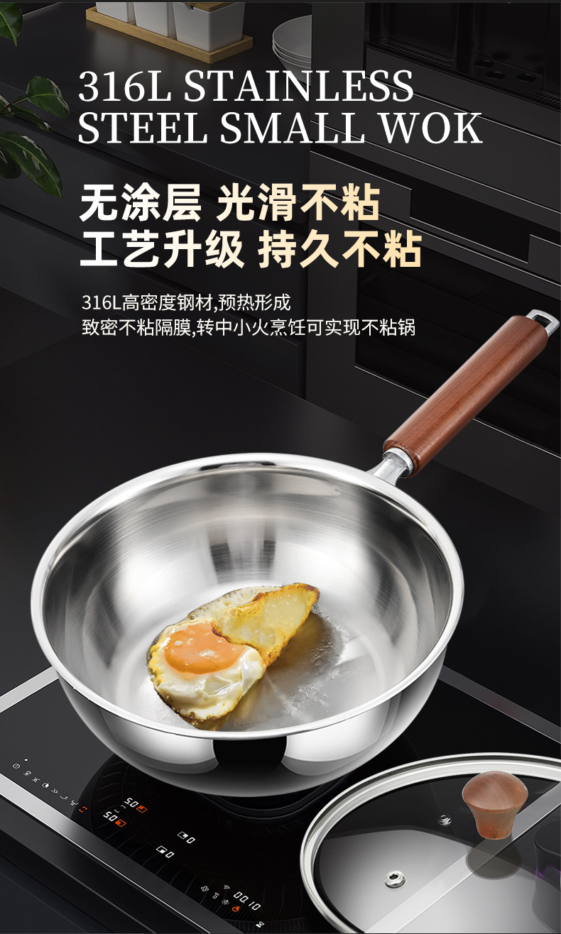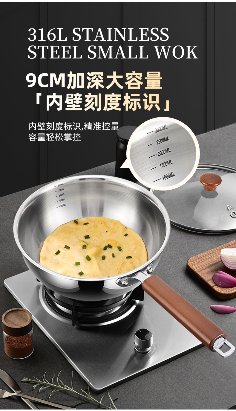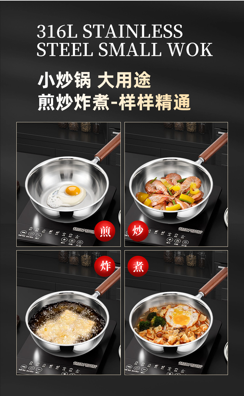 Pot de acero inoxidable 316L grado alimenticio casero sin recubrimiento antiadherente horno electromagnético horno de frita para 1 - 2 personas