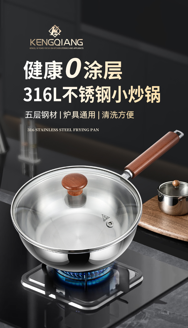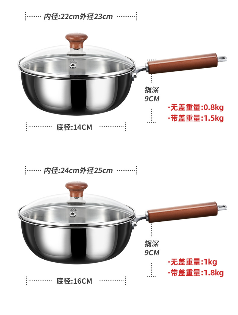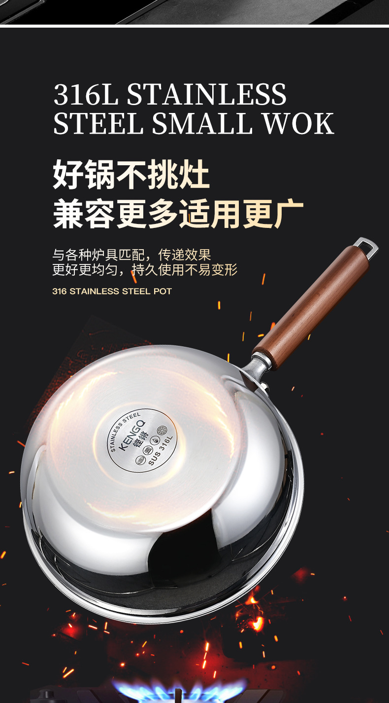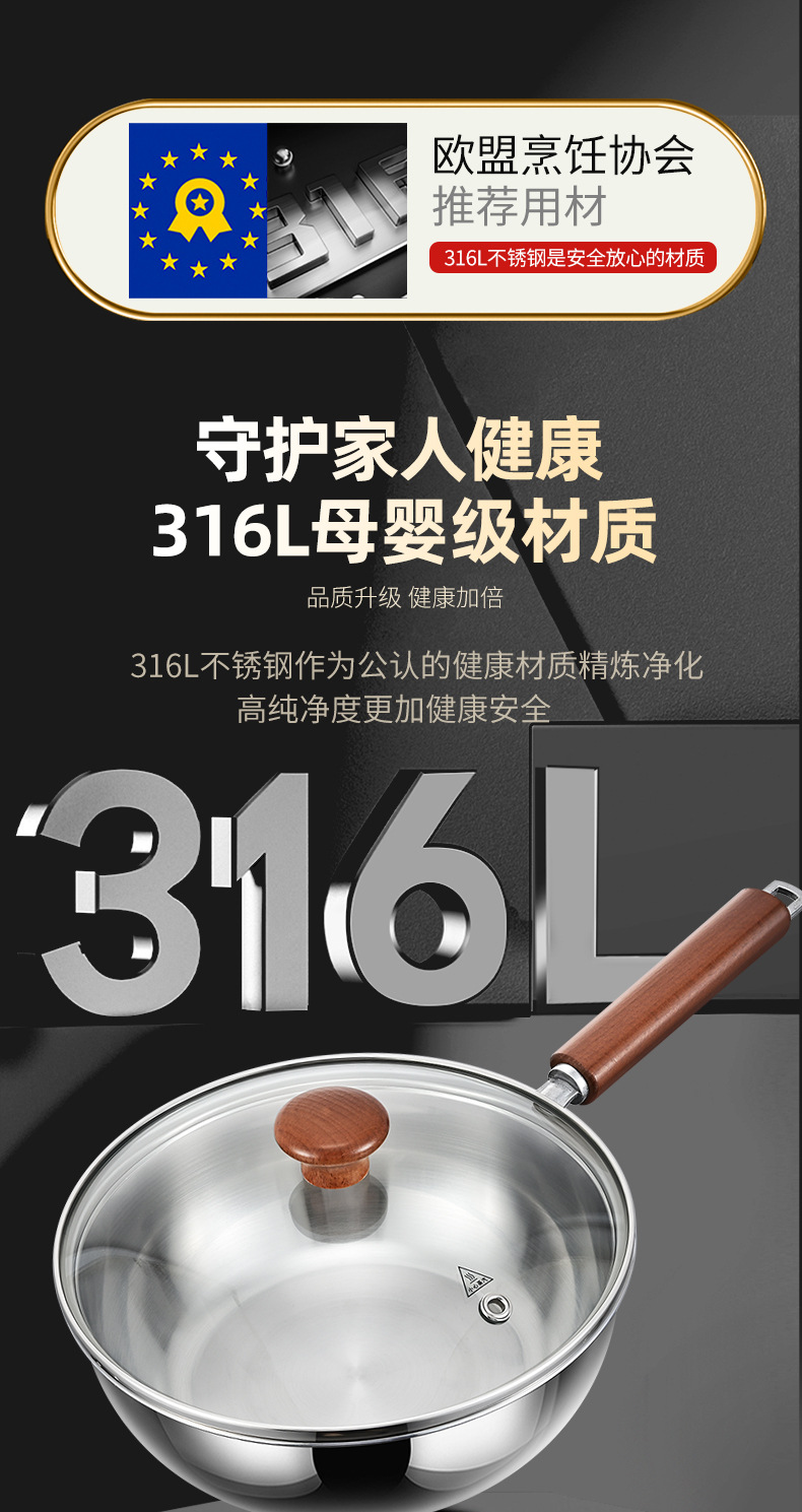Pot de acero inoxidable 316L grado alimenticio casero sin recubrimiento antiadherente horno electromagnético horno de frita para 1 - 2 personas