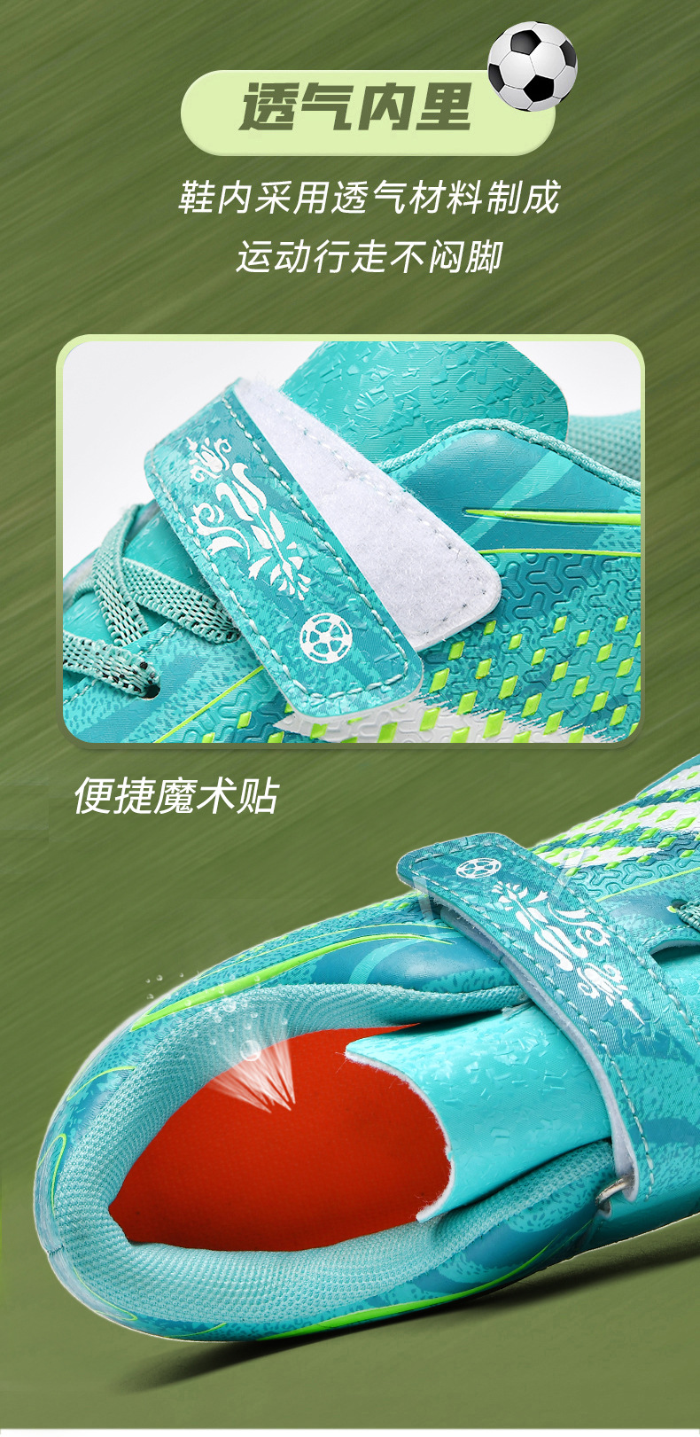 Nuevos zapatos de fútbol para niños, niños y niñas, estudiantes, ventiladores profesionales, velcro, clavos especiales, zapatos de entrenamiento TF Jinjiang Hair