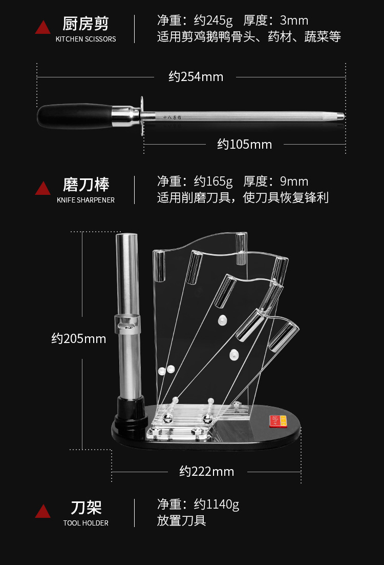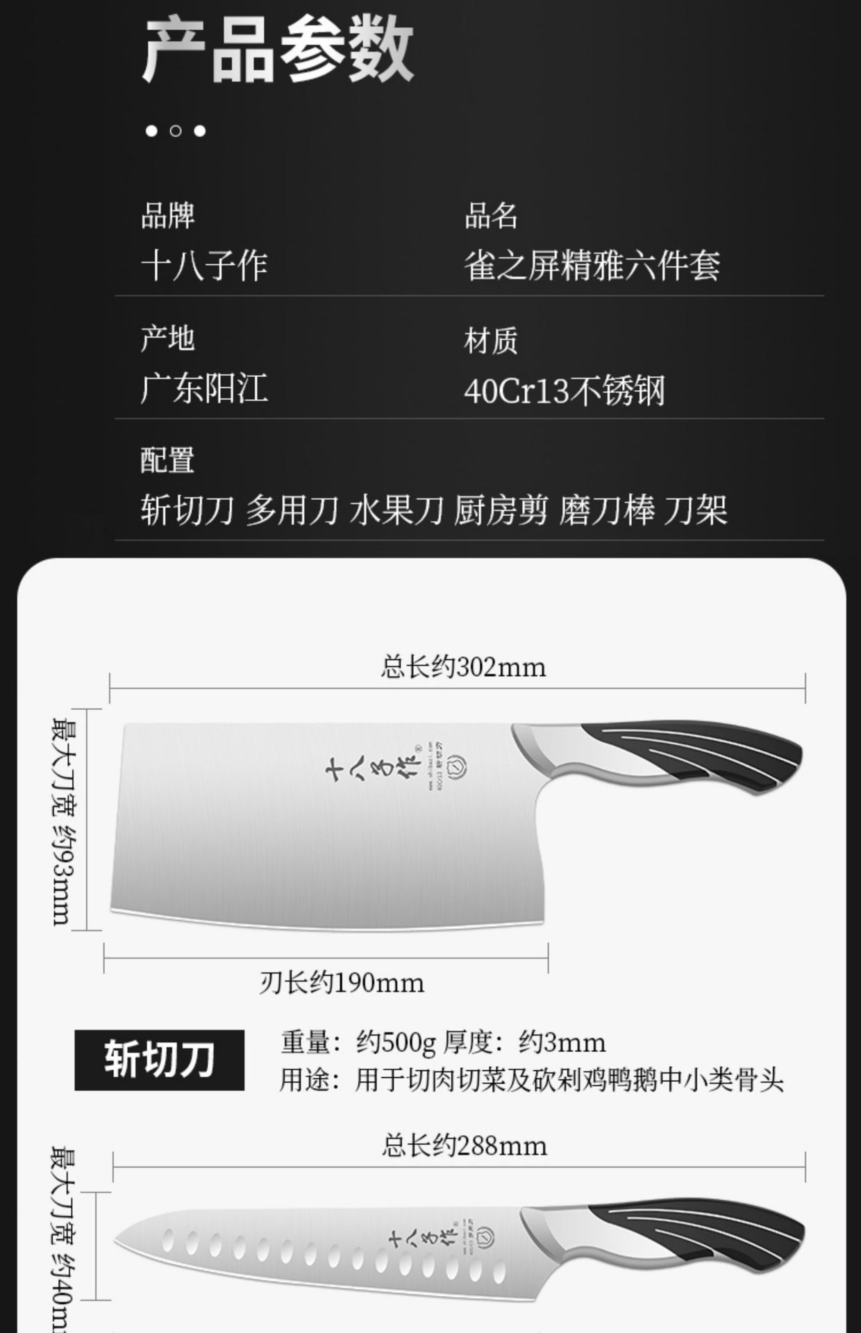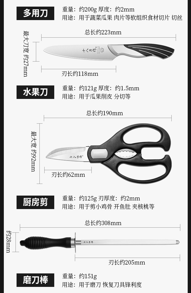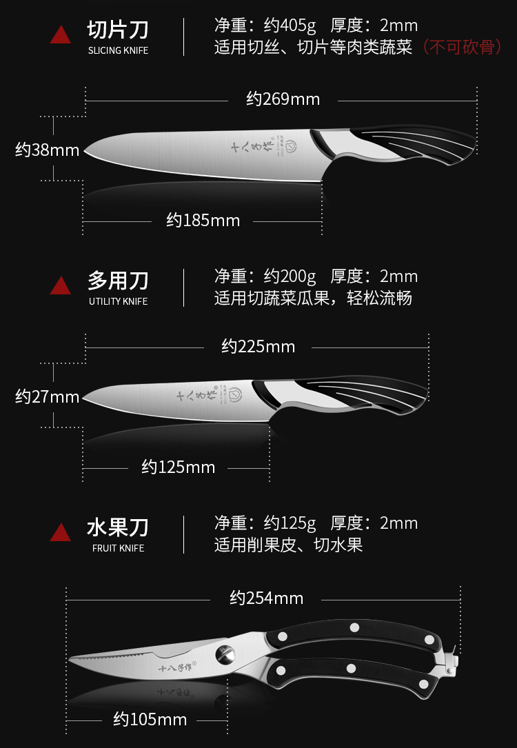 Dieciocho hijos para cocina conjunto completo de utensilios de cocina caseros combinación de cuchillos de cocina de pantalla de pájaros buque insignia oficial Yangjiang