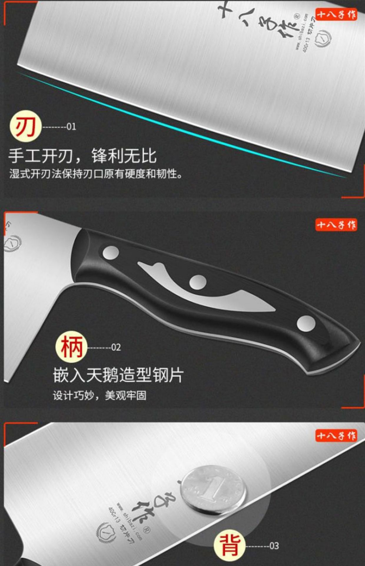 | Color | Cuchillo de corte Shibazi 2908-B,Diez cuchillo de doble propósito de corte de ocho niños,Cortador de hueso dieciocho |