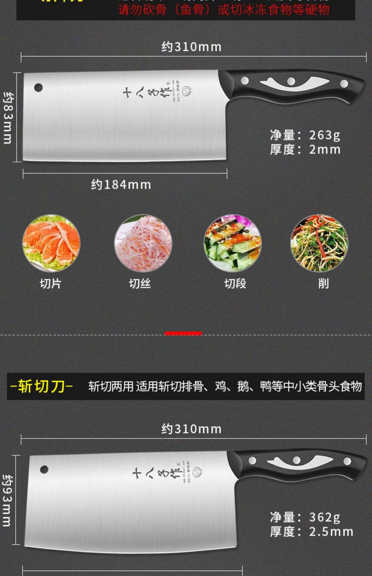 Cuchillo de cocina Eighteen Sons para uso doméstico, cuchillo de acero inoxidable para cortar, rebanar y cortar huesos, herramienta de cocina genuina de la tienda oficial.