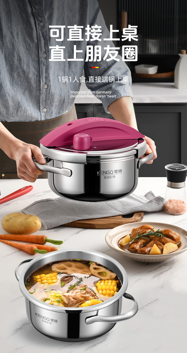Mini olla a presión sonora 1-2 personas olla a presión pequeña olla a presión olla de sopa de micropresión gas 316 olla a presión a prueba de explosiones de acero inoxidable