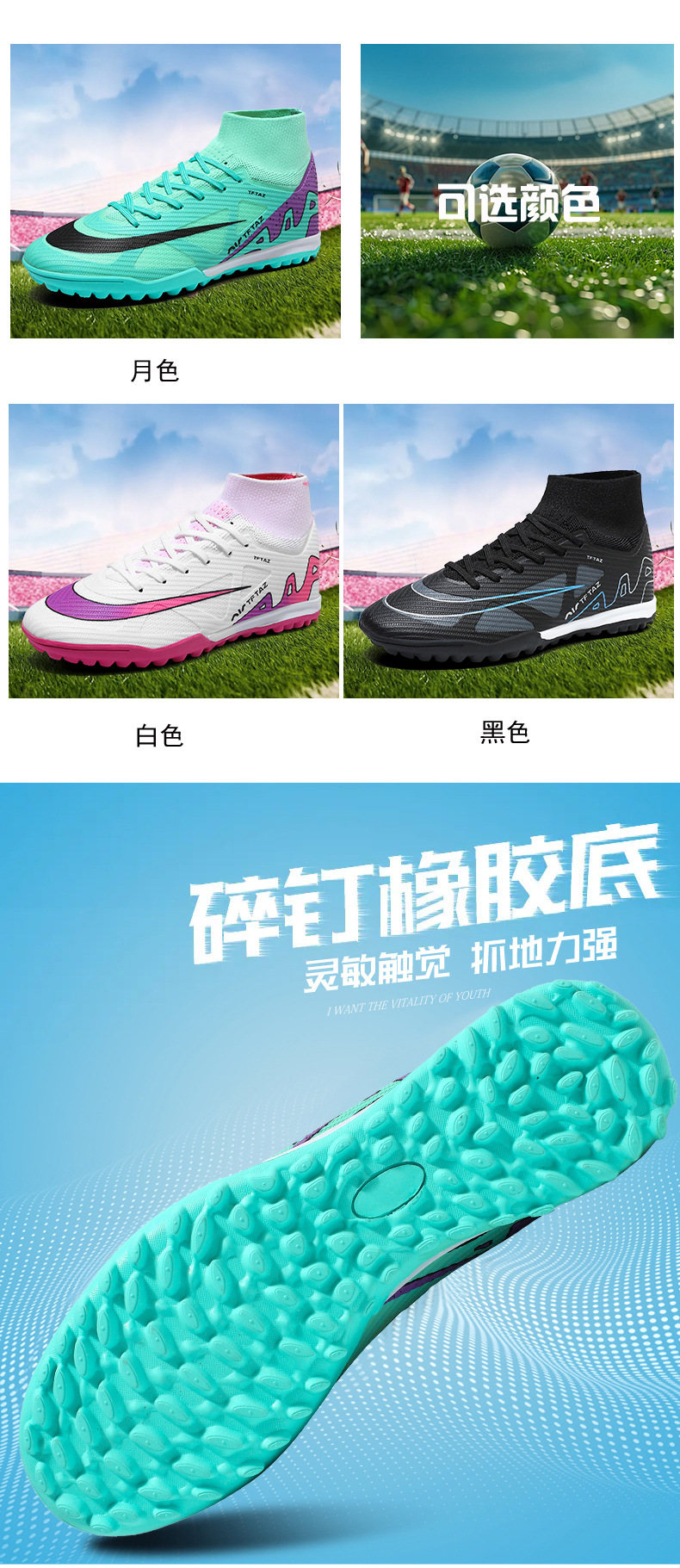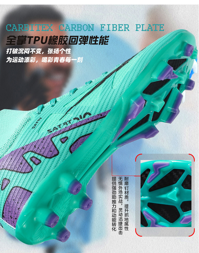 24 zapatos de fútbol de alto nivel transfronterizos juveniles zapatos de entrenamiento de entrenamiento de clavos largos zapatos de fútbol para hombres y mujeres