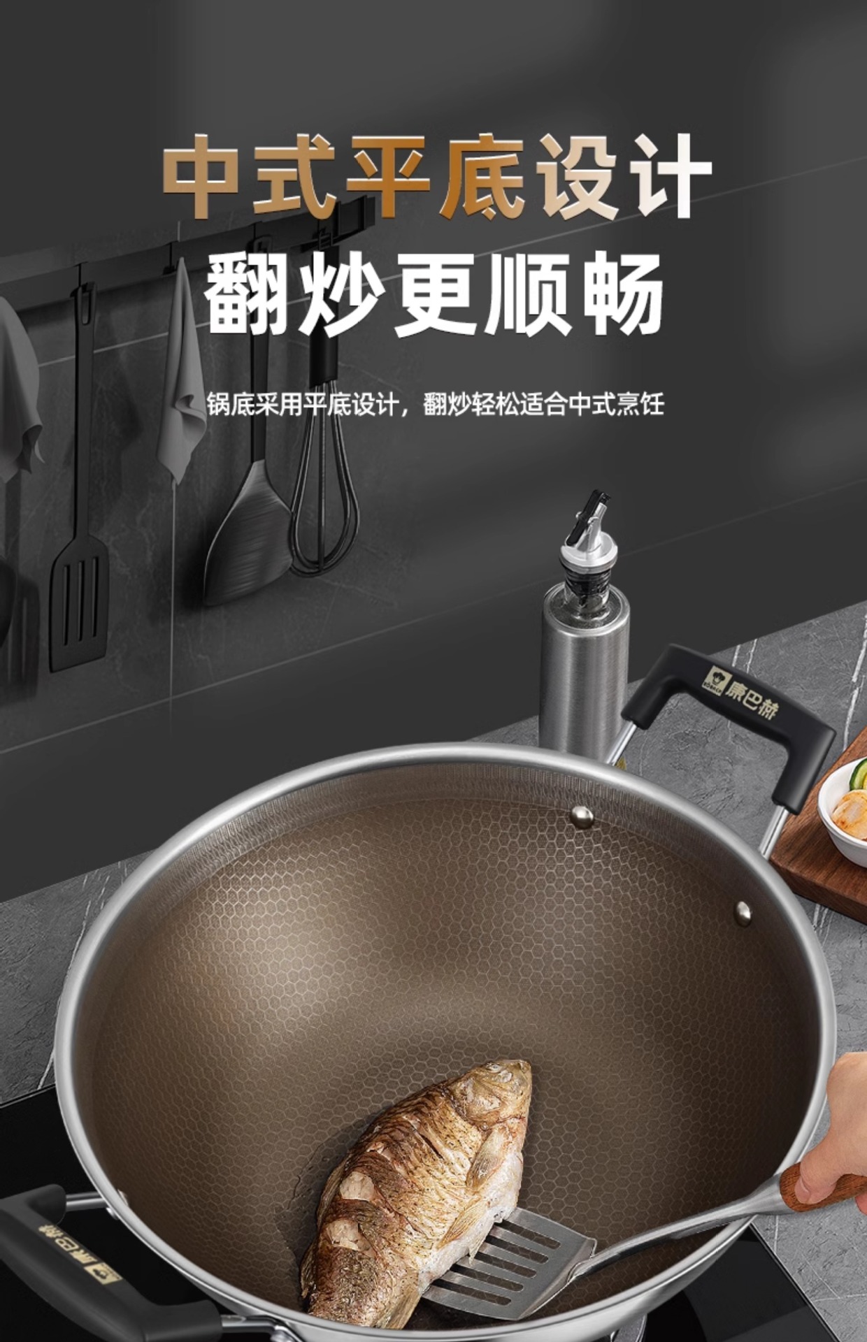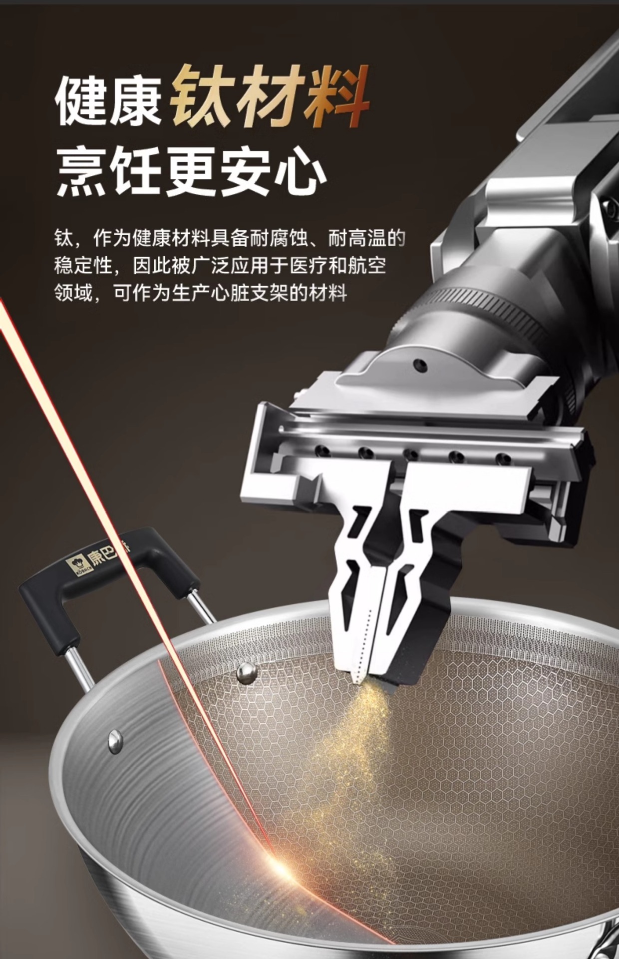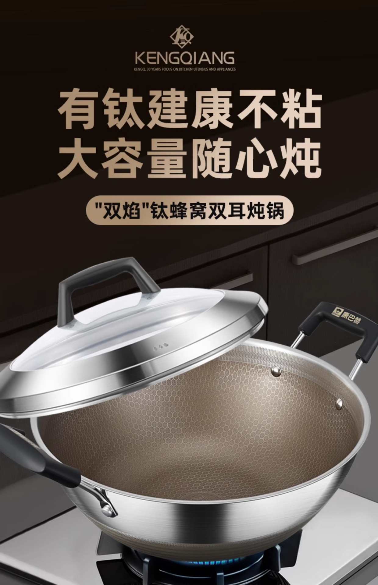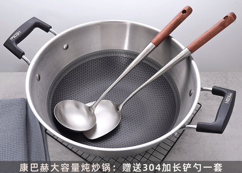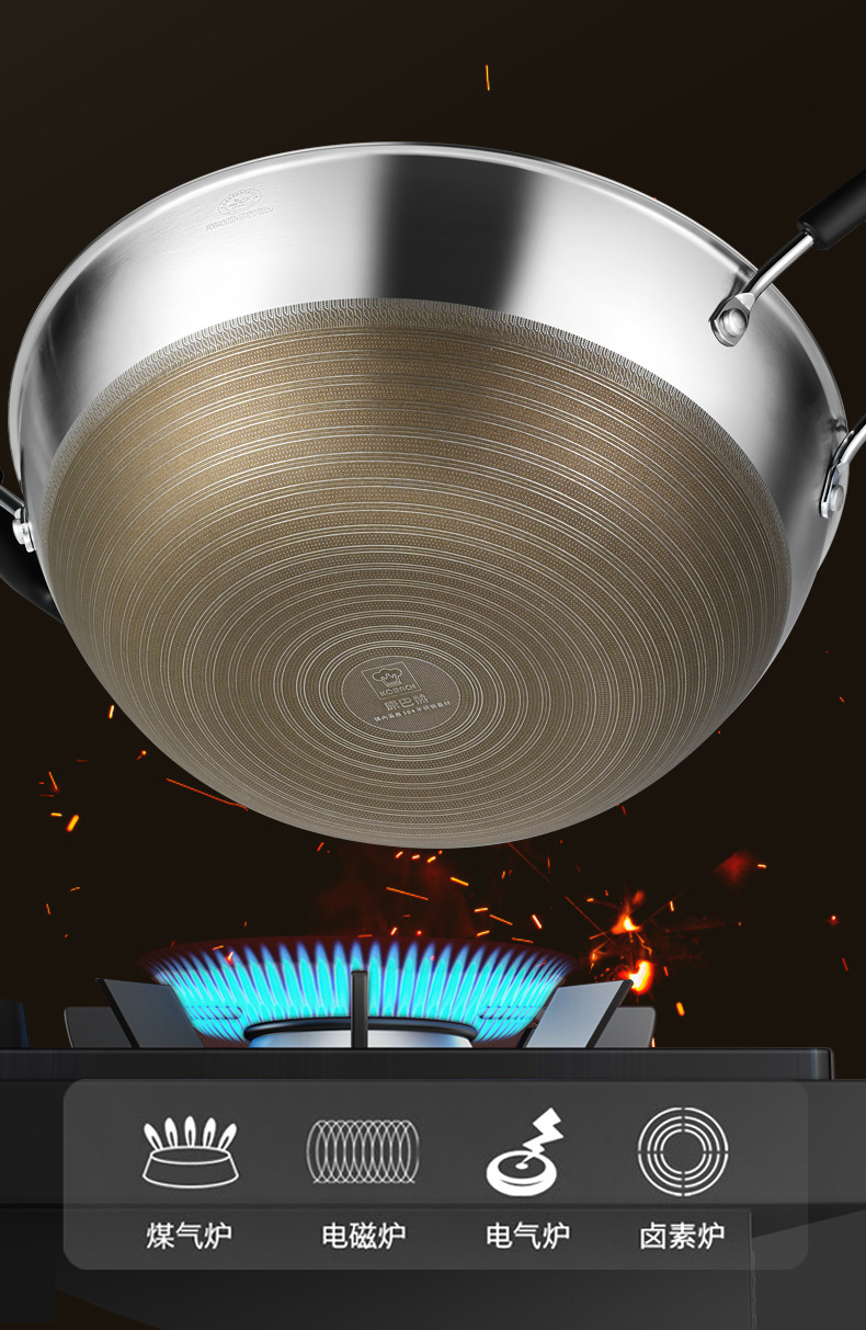 Kangbach tiene wok de titanio, sartén antiadherente profunda, cocina grande de acero inoxidable, cocina de inducción, estufa de gas, sartén binaural