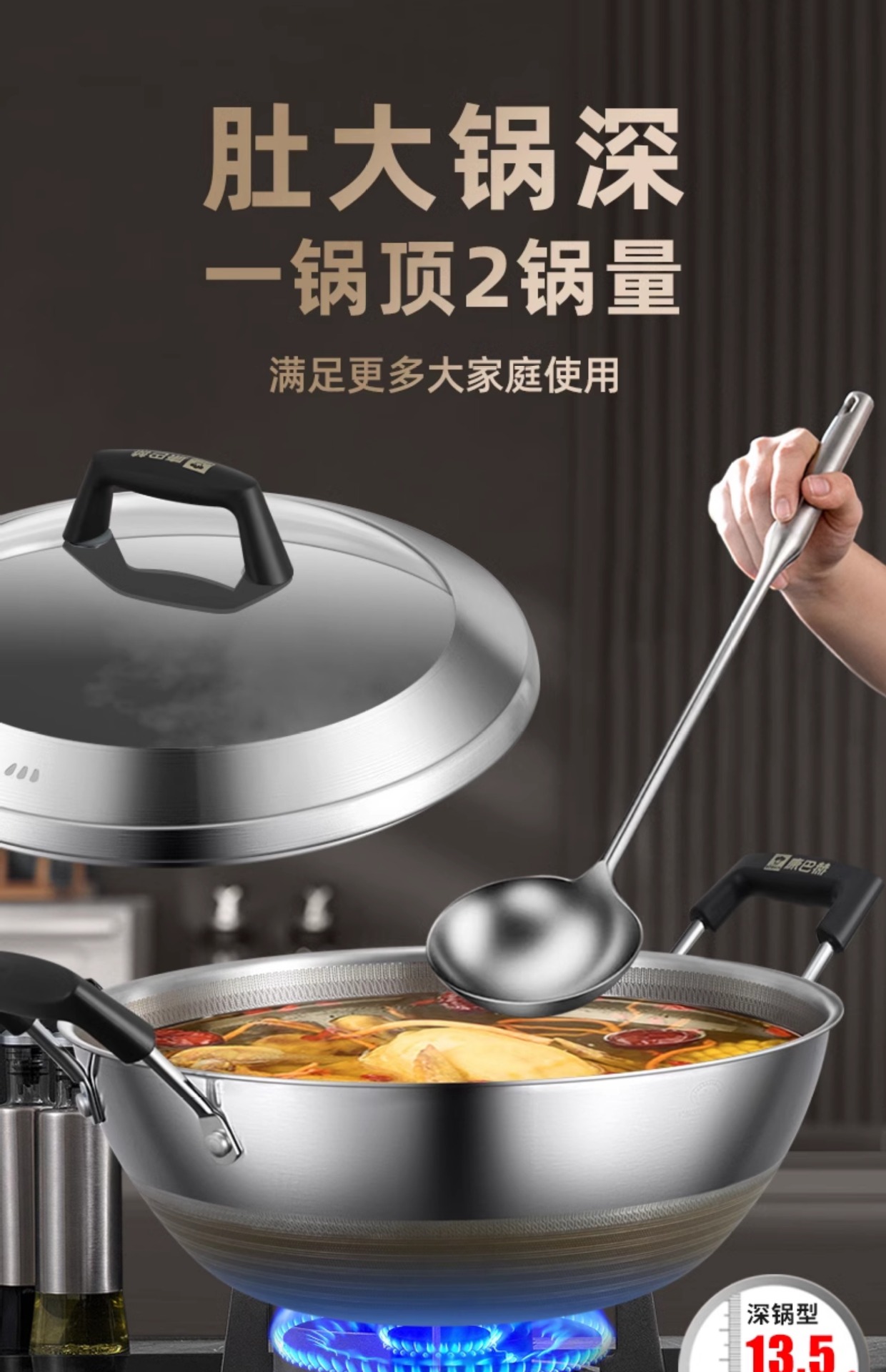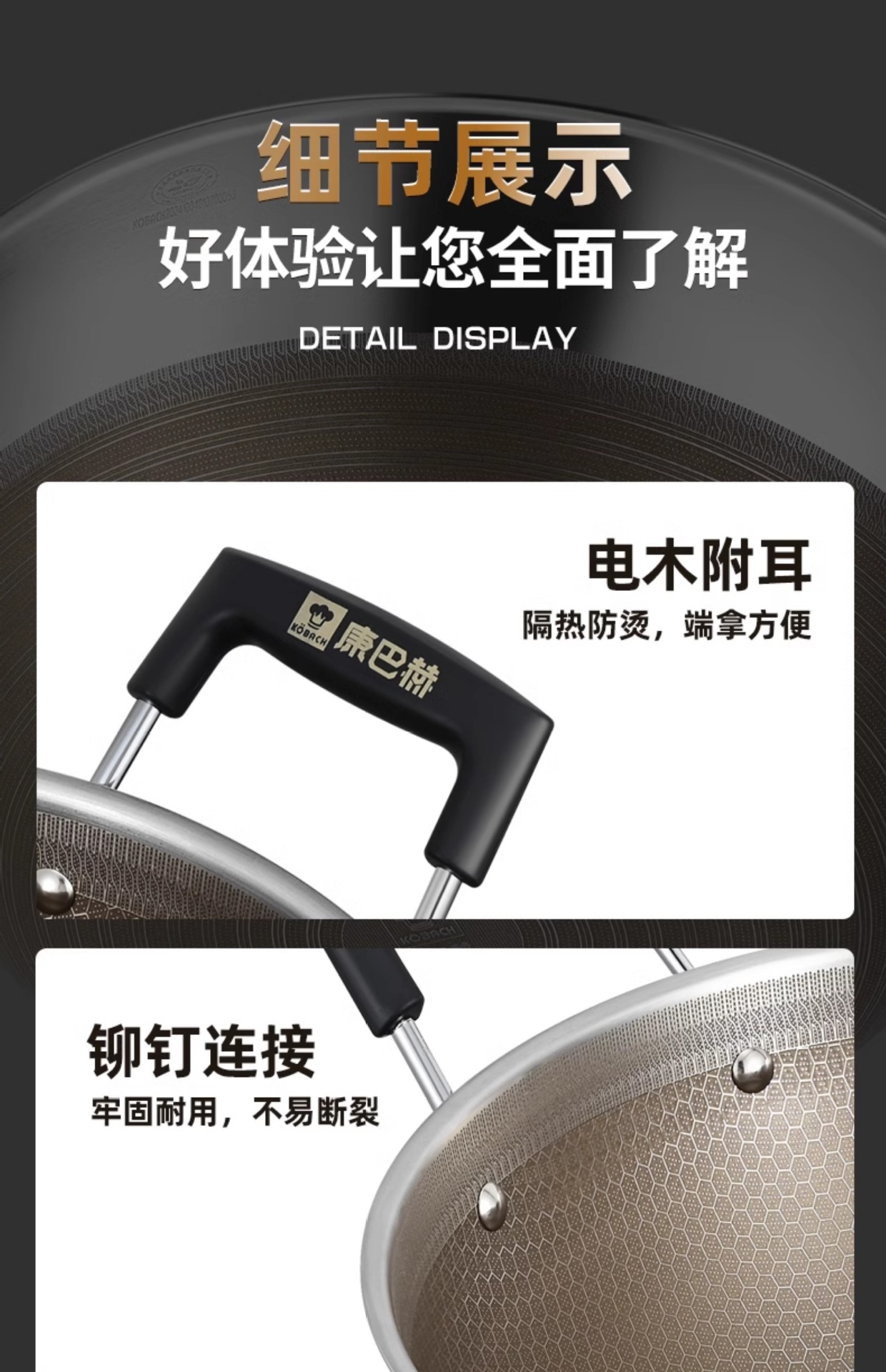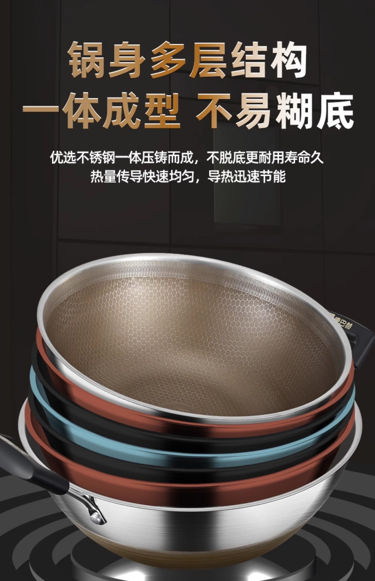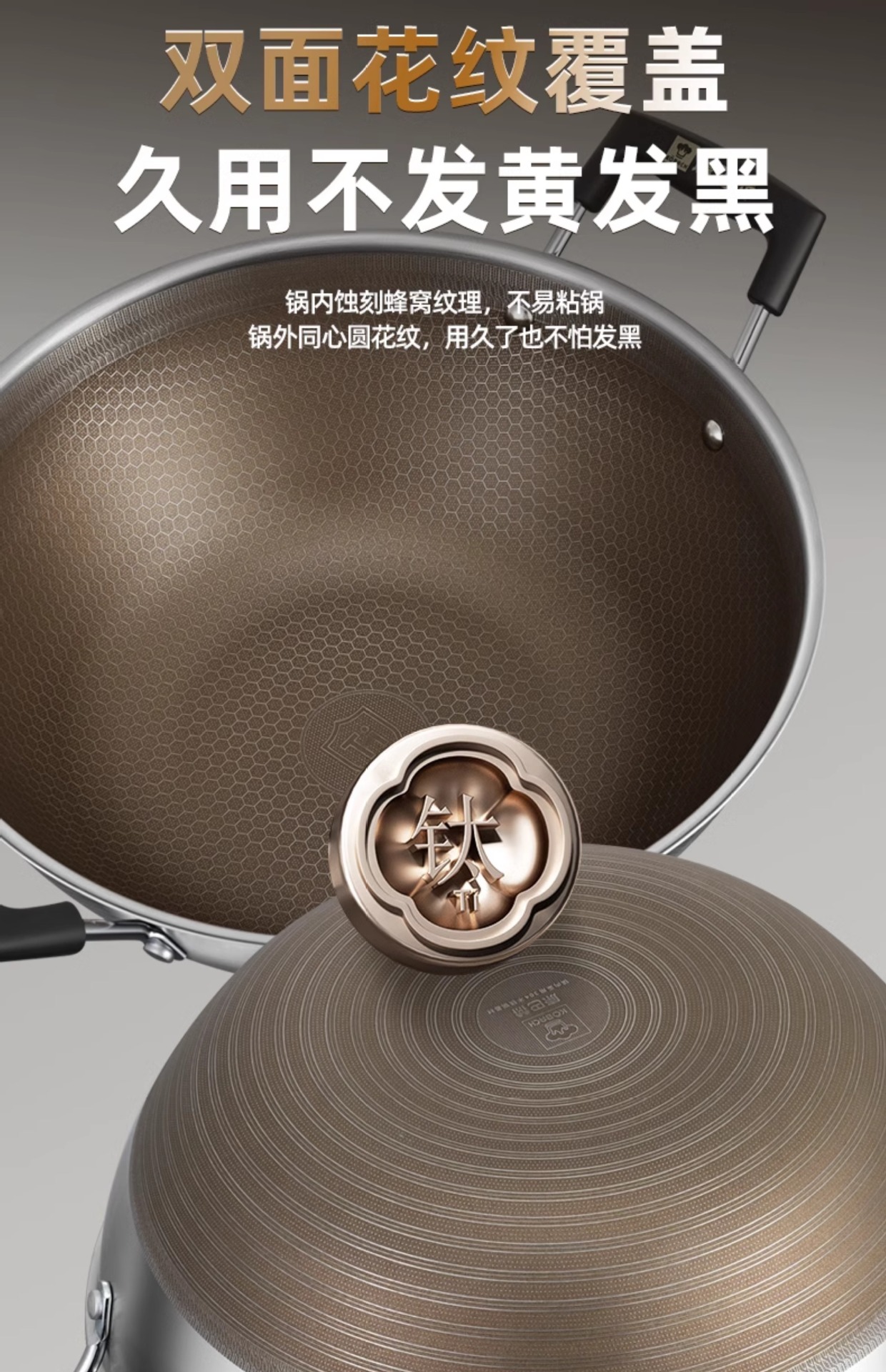 Kangbach tiene wok de titanio, sartén antiadherente profunda, cocina grande de acero inoxidable, cocina de inducción, estufa de gas, sartén binaural