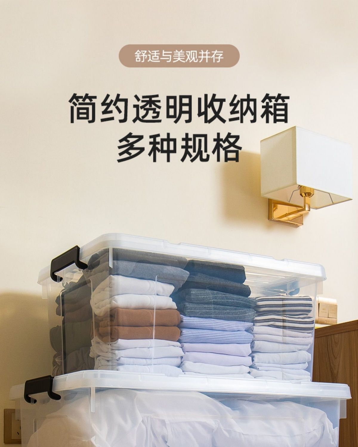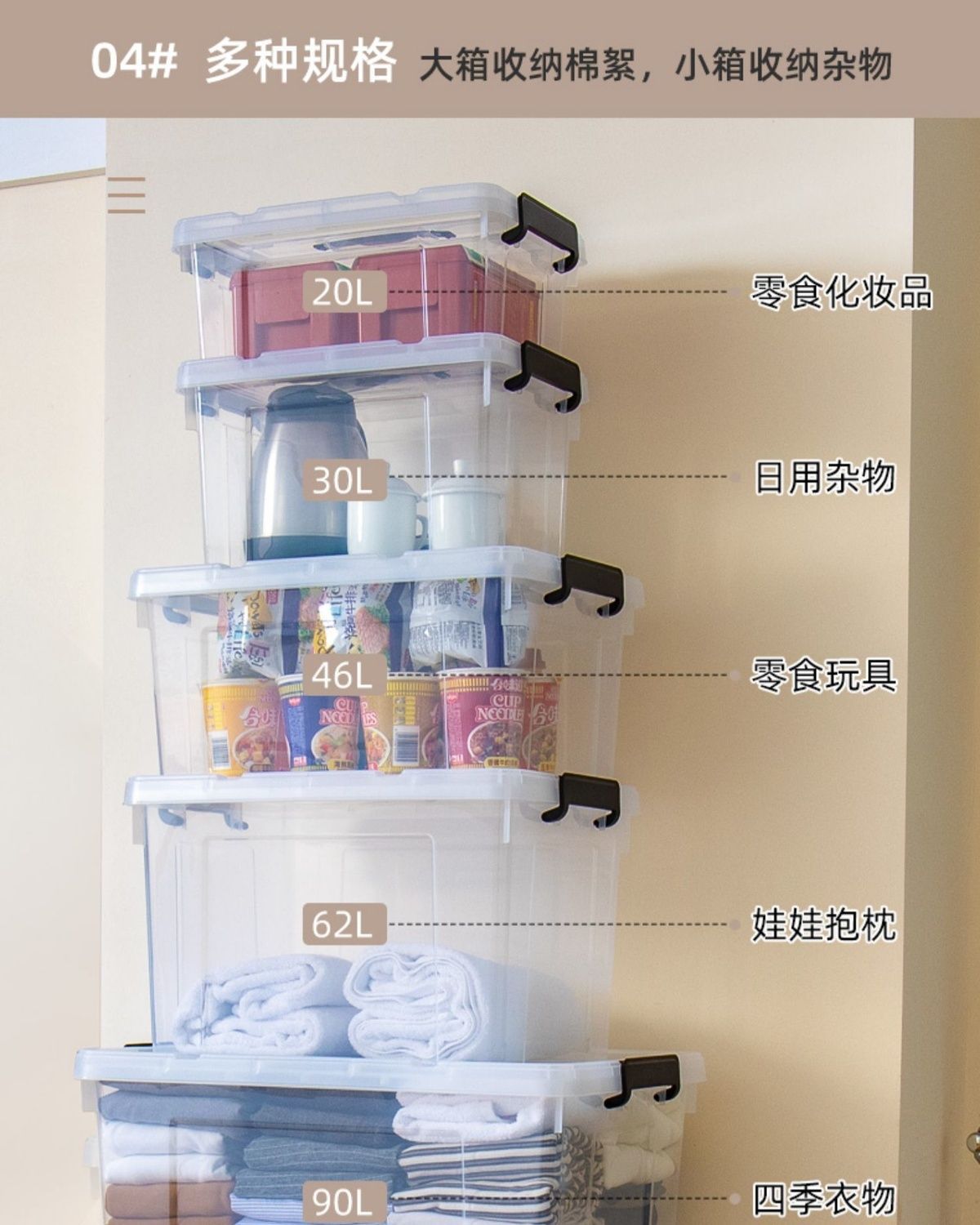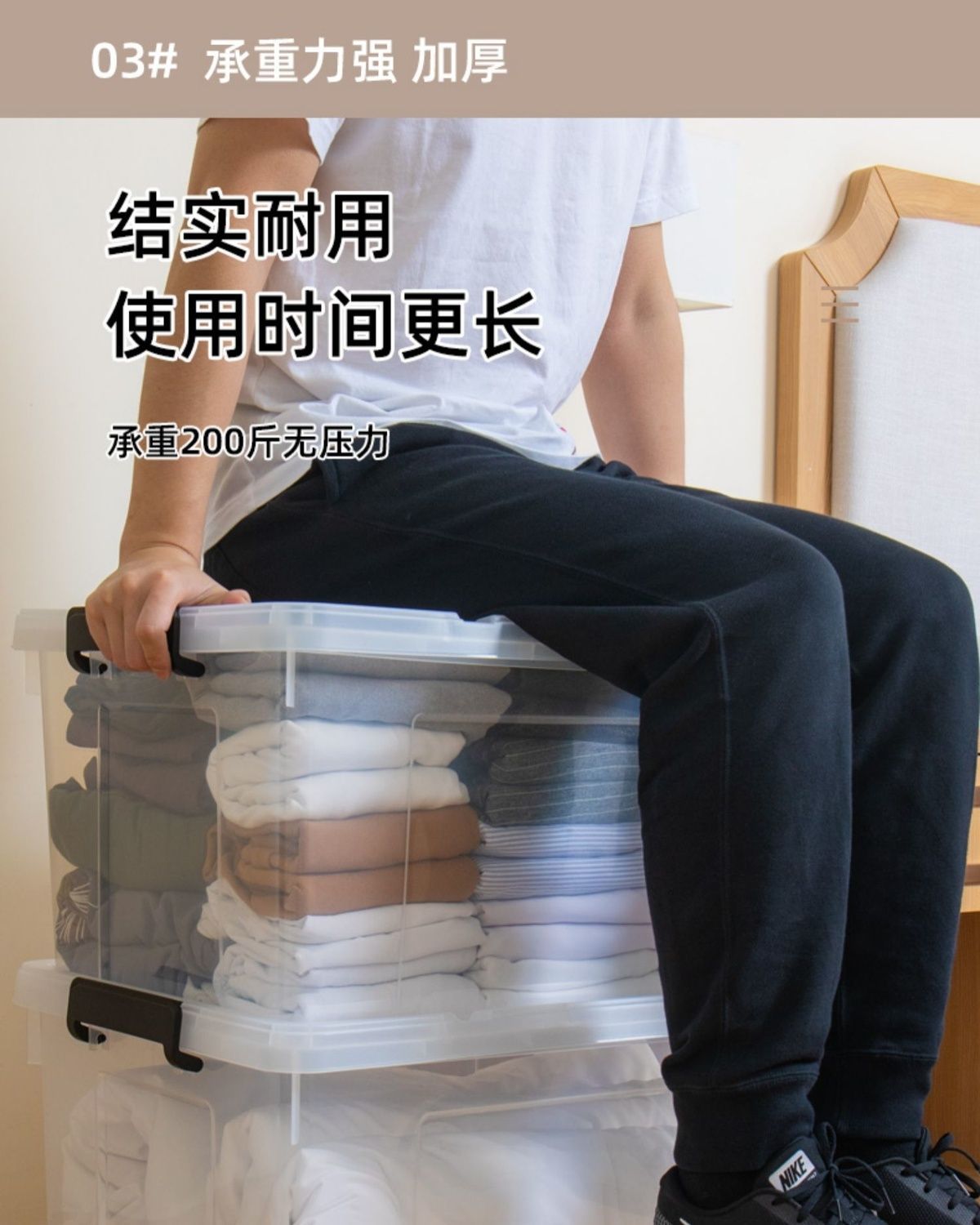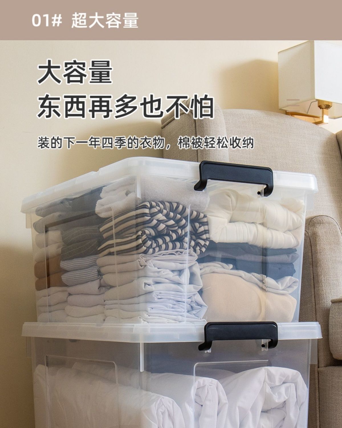 Caja de almacenamiento de Chenning gran capacidad caja de acabado de plástico transparente cubierta caja de almacenamiento de ropa doméstica