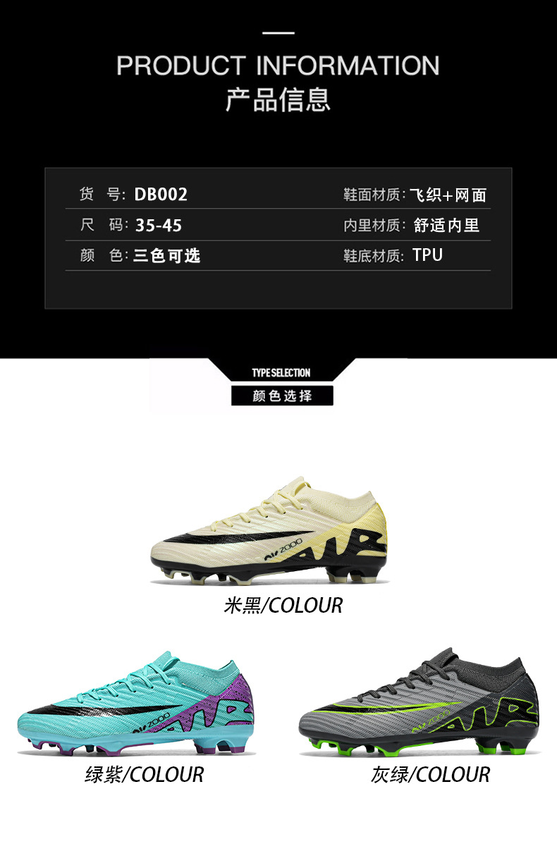 Comercio exterior transfronterizo Football Shoes Zapatos de fútbol de tacón largo Zapatos de entrenamiento Zapatos Adolescentes Soccer Shoes
