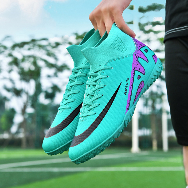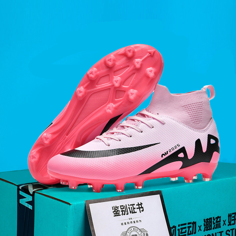 Zapatos de fútbol al por mayor de tamaño grande de alto impacto para niños zapatos de clavos de cuero pegamento de clavos largos zapatos deportivos adolescentes de tamaño grande