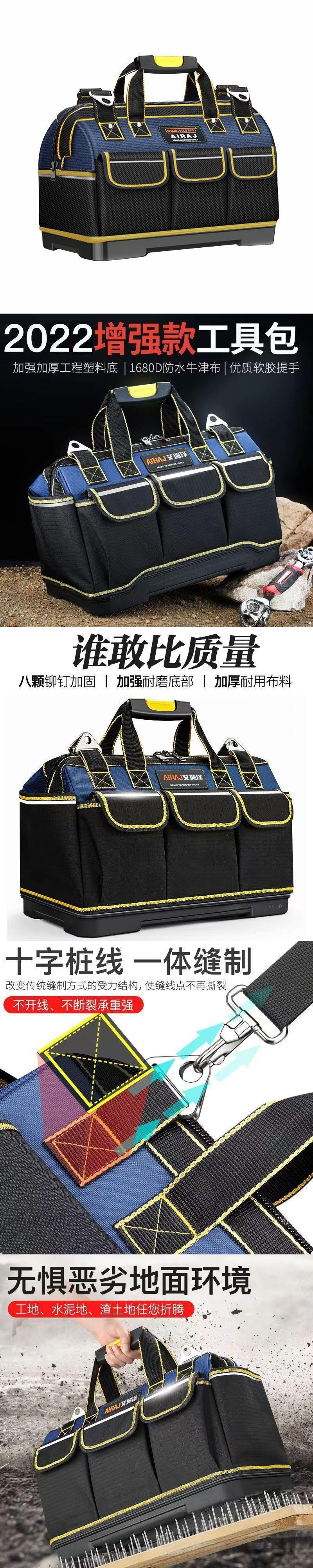 Arise Kit de herramientas eléctricas portátil multifuncional de instalación y mantenimiento portátil lienzo gran bolsa de herramientas gruesas