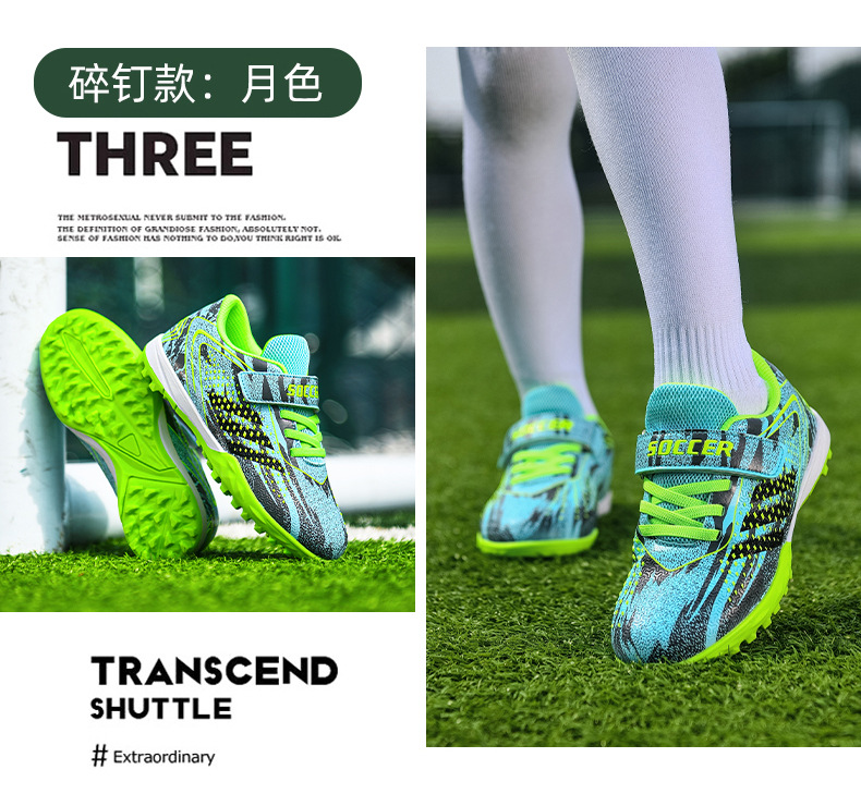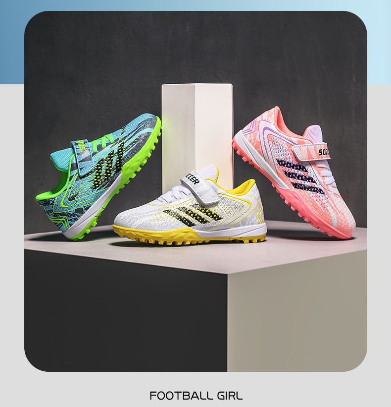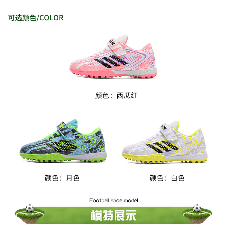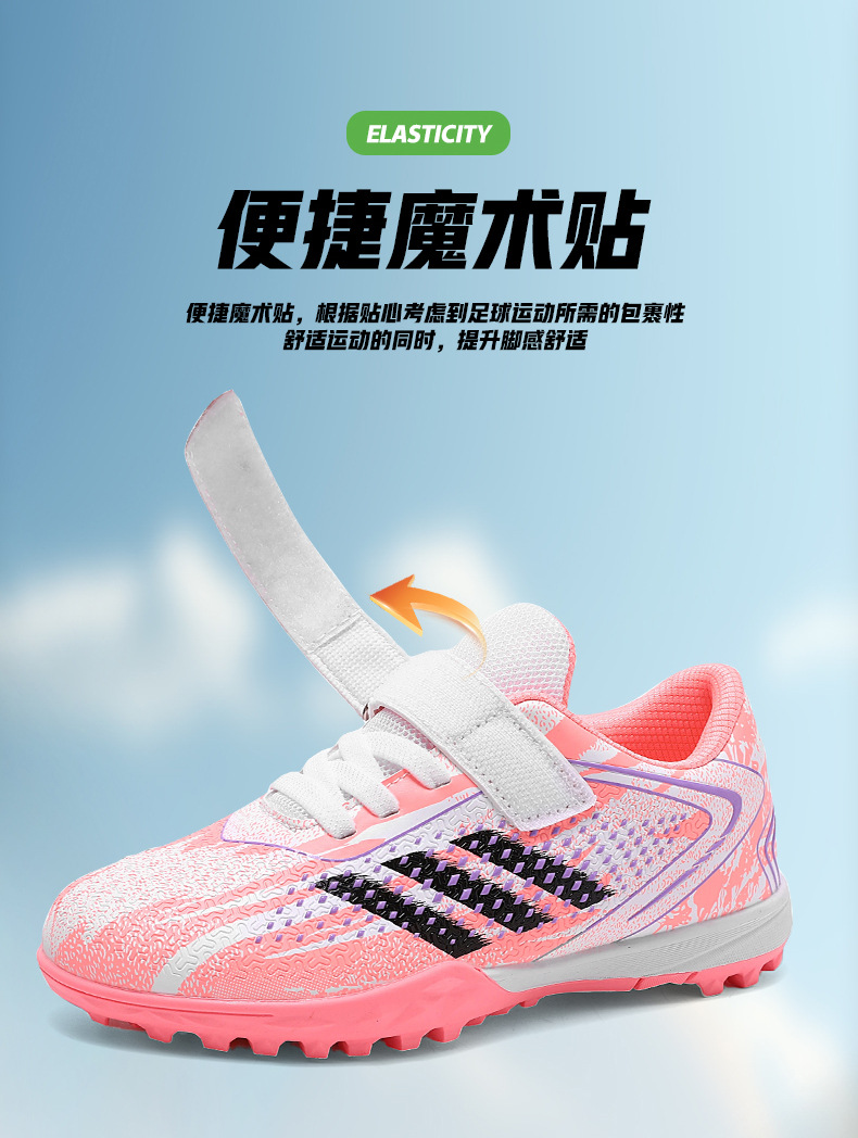 Verano nuevos productos transpirables niños velcro zapatos de fútbol zapatos deportivos para niños y niñas zapatos de entrenamiento anti-deslizante TF