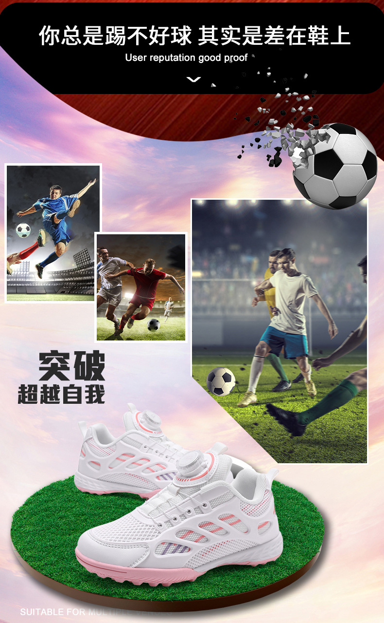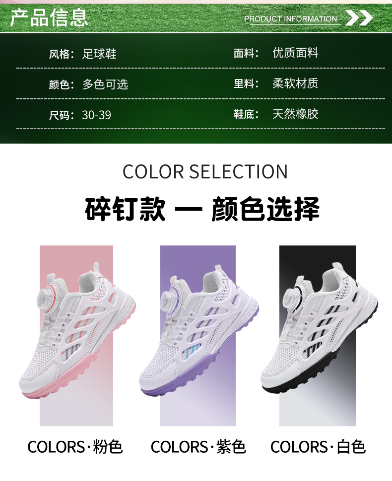 Nuevos zapatos de fútbol de clavos infantiles transfronterizos zapatos de fútbol de entrenamiento al aire libre de estudiantes primarios zapatos antideslizantes botones zapatos de fútbol mayoristas