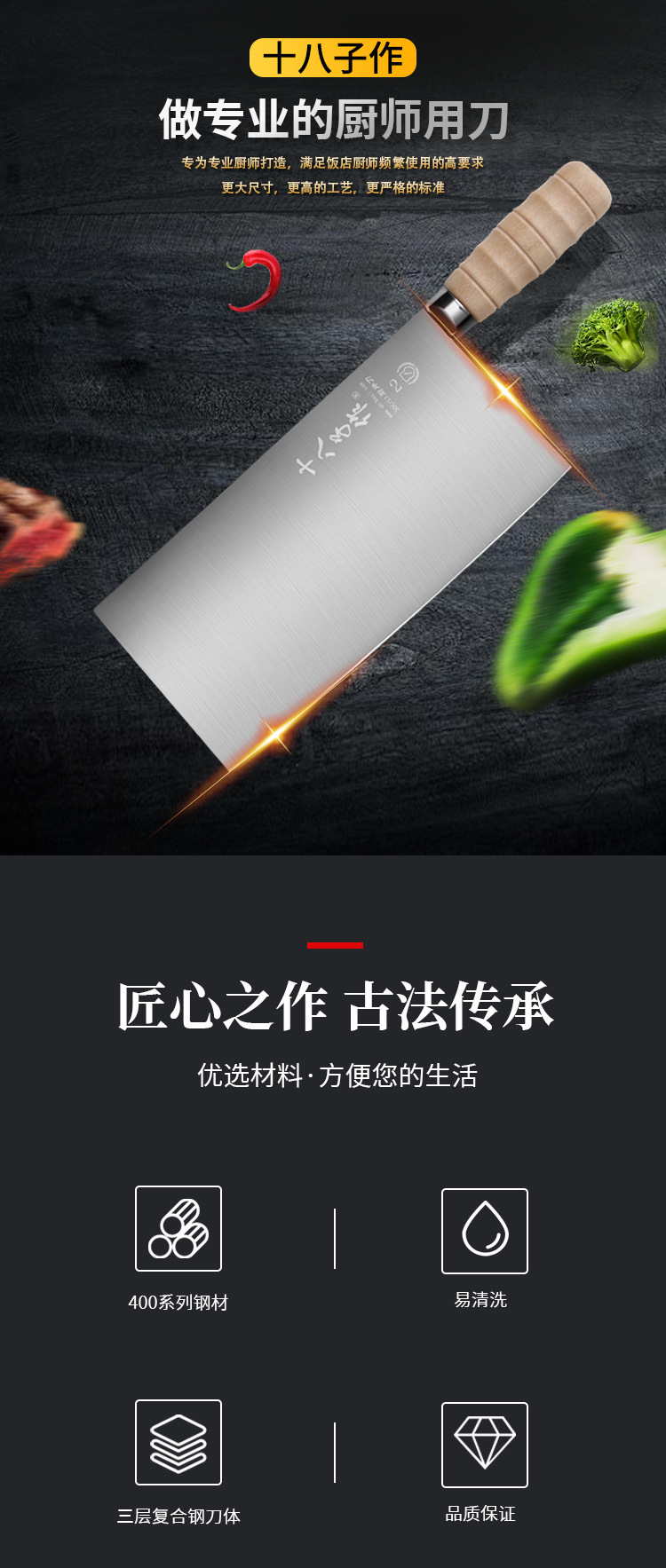 Cuchillo de cocina para chef cuchillo de cocina especial N ° 1, N ° 2 mango de madera forja cocina rebanada cortador S223-2