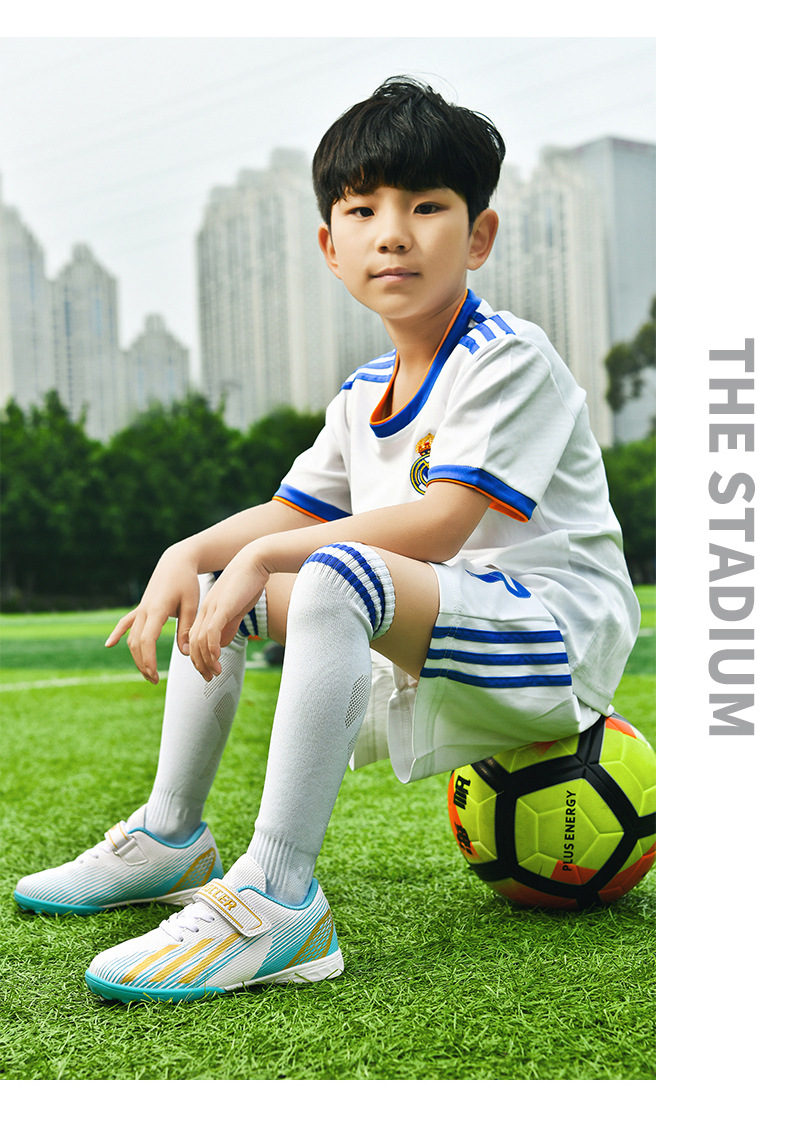Zapatos de fútbol de velcro para niños, niños y niñas, niños y niñas, zapatos de fútbol de césped artificial, zapatos de entrenamiento de competencia