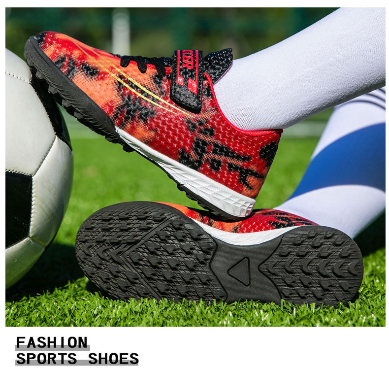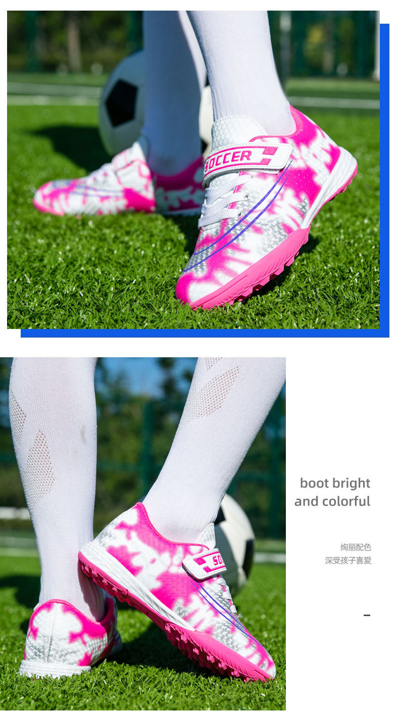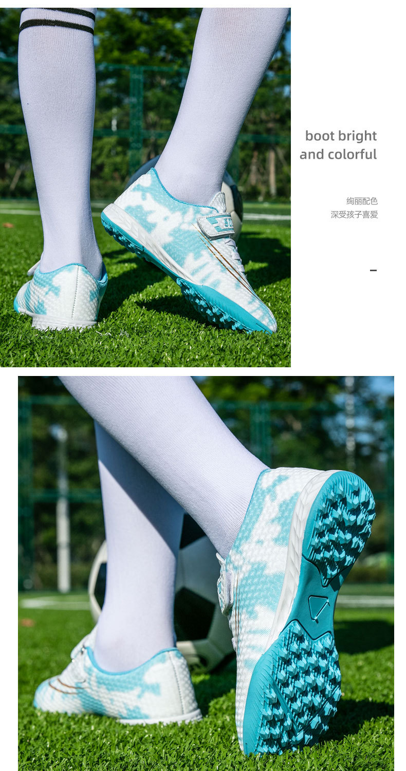 Nuevos zapatos de fútbol TF para niños, niños y niñas, zapatos deportivos antideslizantes para estudiantes de primaria y secundaria, zapatos de fútbol con velcro