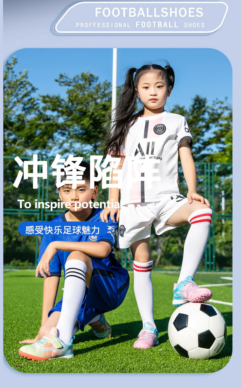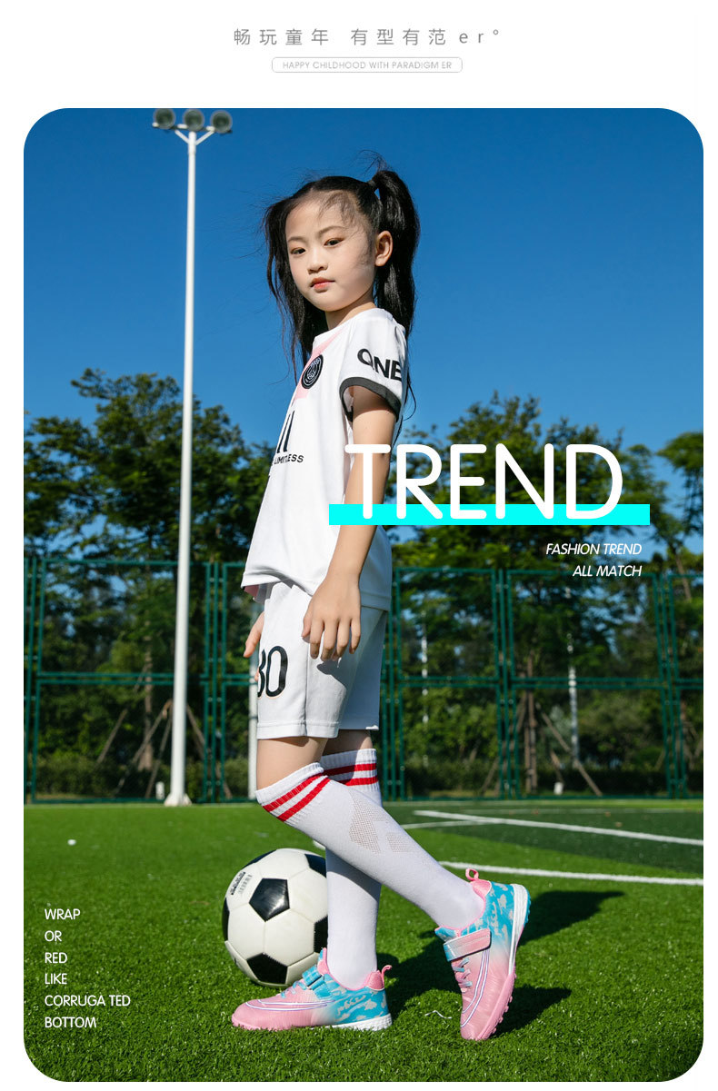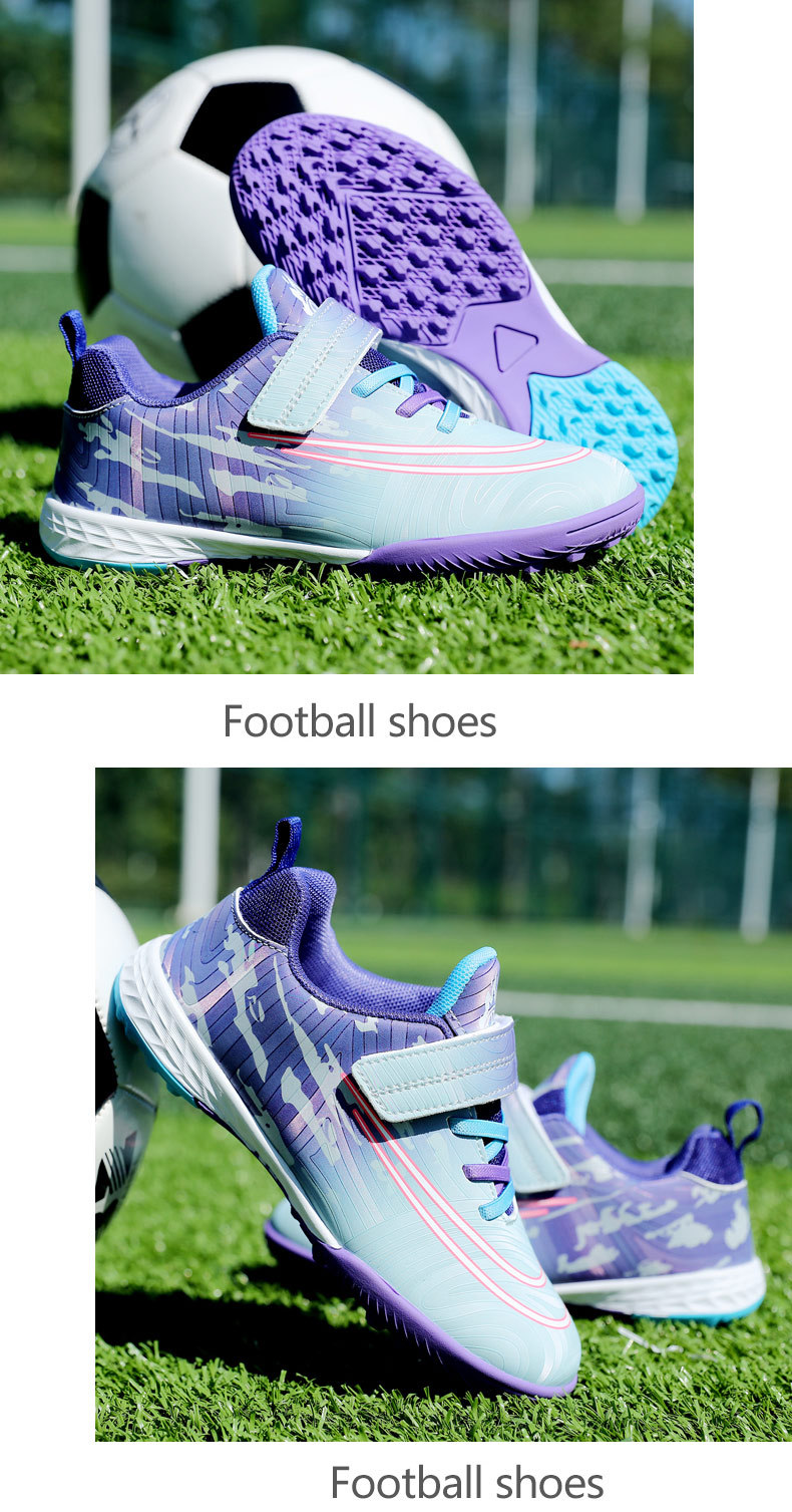 Zapatos de fútbol infantiles transfronterizos para niños niñas velcro para estudiantes de primaria y secundaria en interiores zapatos de entrenamiento deportivo de piso plano